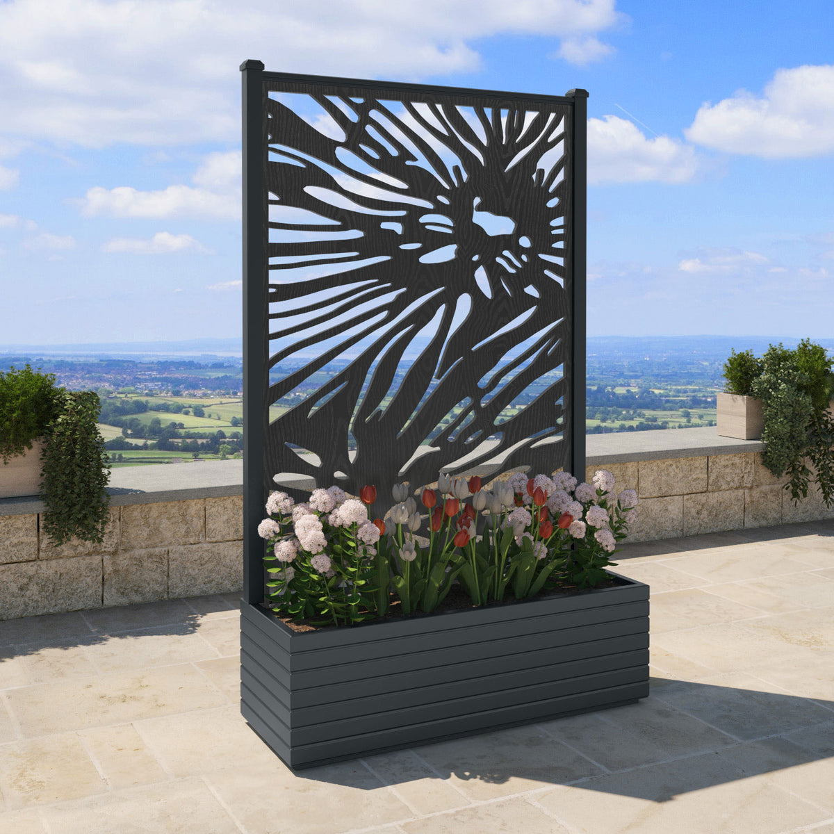 The planters are available in 6 different sizes and can be paired with any of our decorative screens that are available in 5 different colour options. The screens can be fixed at the back or in the centre of the planter. The centre option enables you to plant on both sides of the screen. They can also be ordered with a wheeled base for convenience, with lockable wheels for stability.