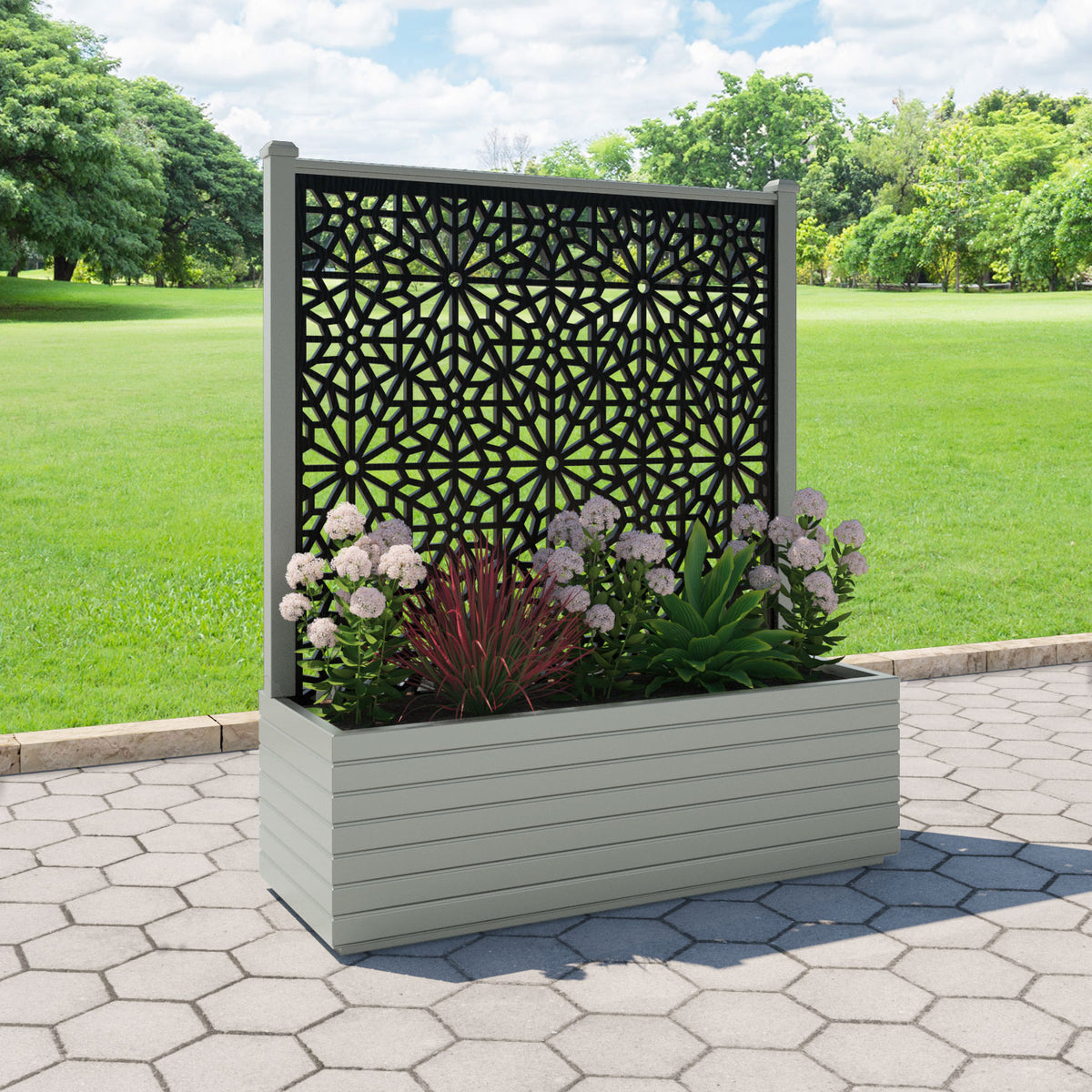 The planters are available in 6 different sizes and can be paired with any of our decorative screens that are available in 5 different colour options. The screens can be fixed at the back or in the centre of the planter. The centre option enables you to plant on both sides of the screen. They can also be ordered with a wheeled base for convenience, with lockable wheels for stability.