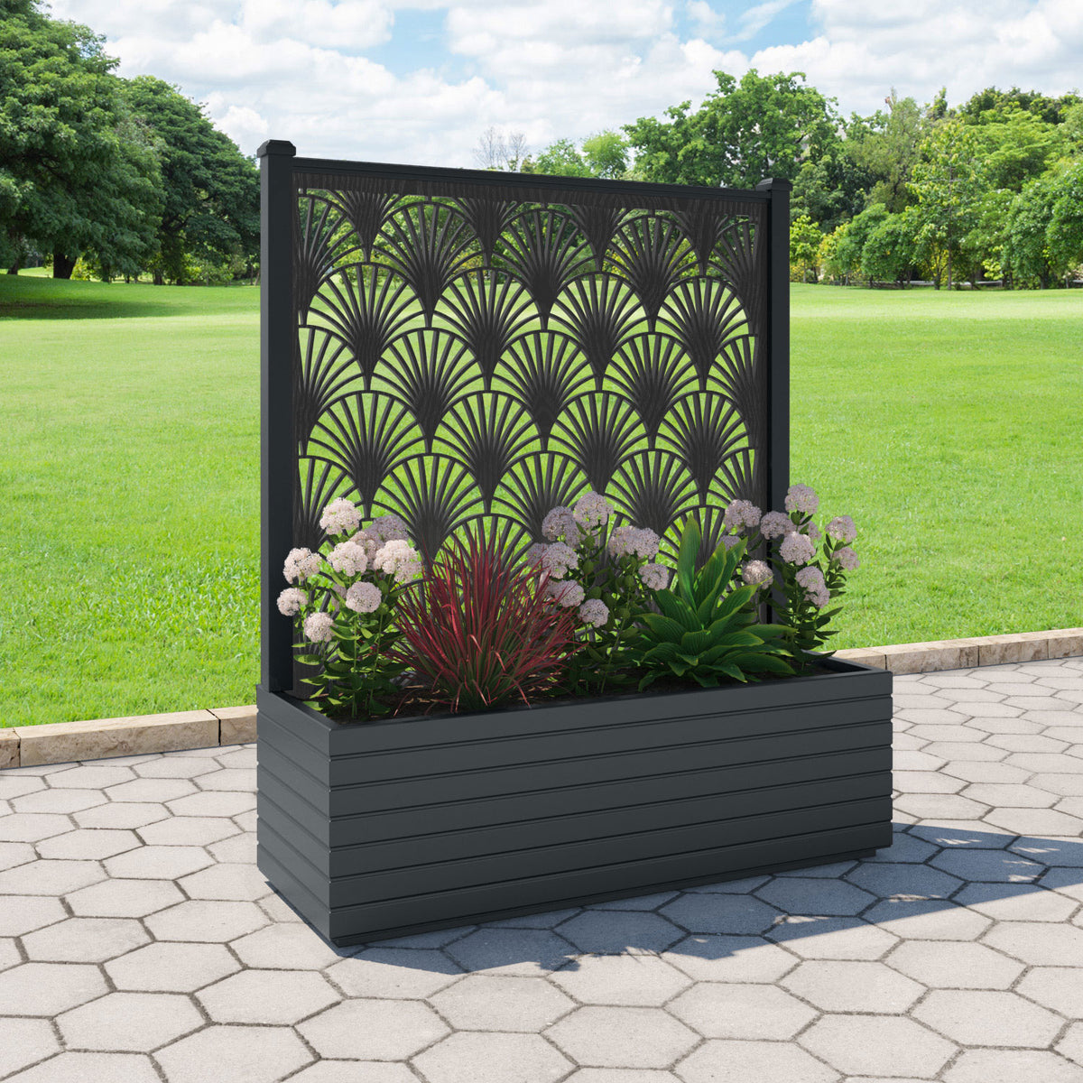 Our all-weather, durable planters are designed to serve both practical and aesthetic purposes by providing an elegant solution to screen certain areas and adding a touch of beauty and greenery to any space.
