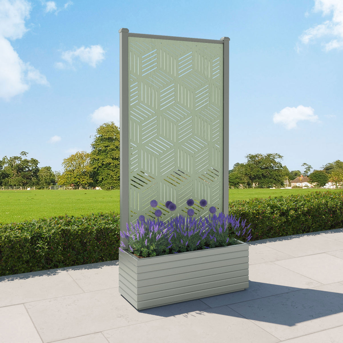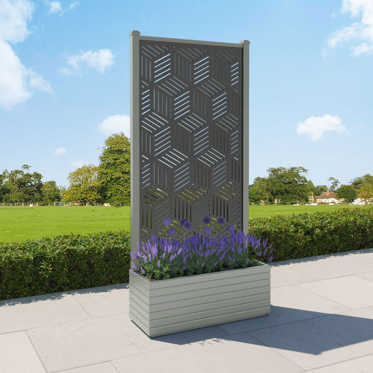 The planters are available in 6 different sizes and can be paired with any of our decorative screens that are available in 5 different colour options. The screens can be fixed at the back or in the centre of the planter. The centre option enables you to plant on both sides of the screen. They can also be ordered with a wheeled base for convenience, with lockable wheels for stability.