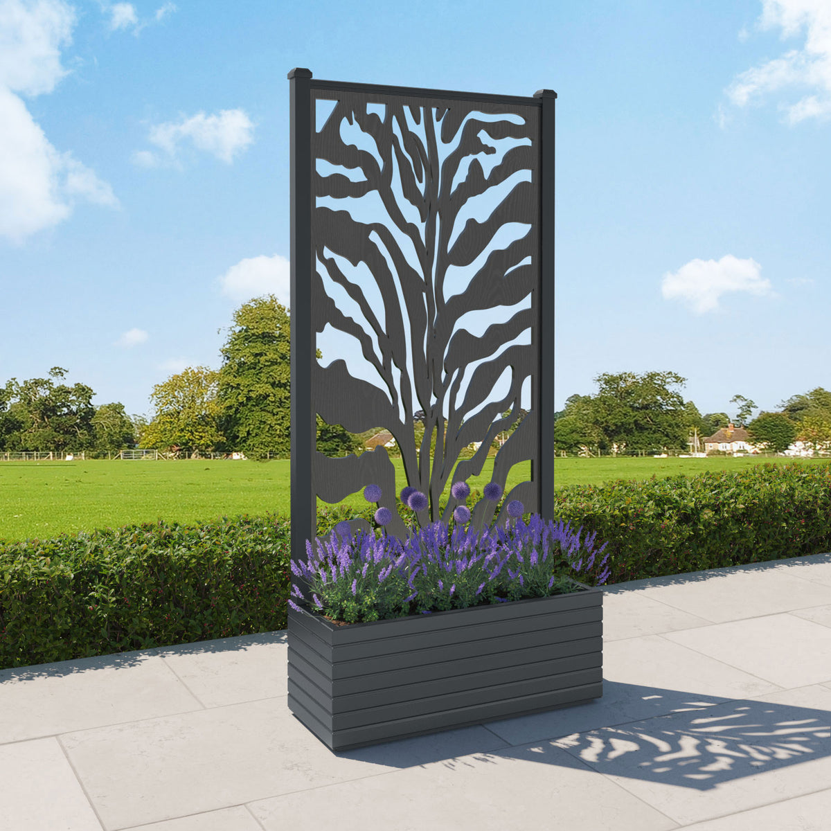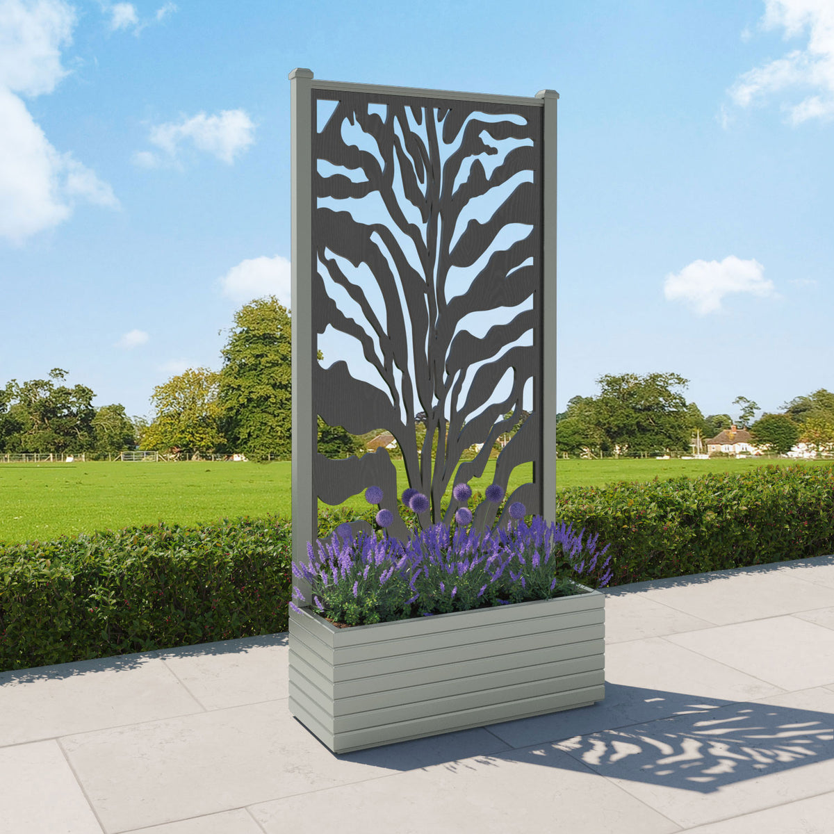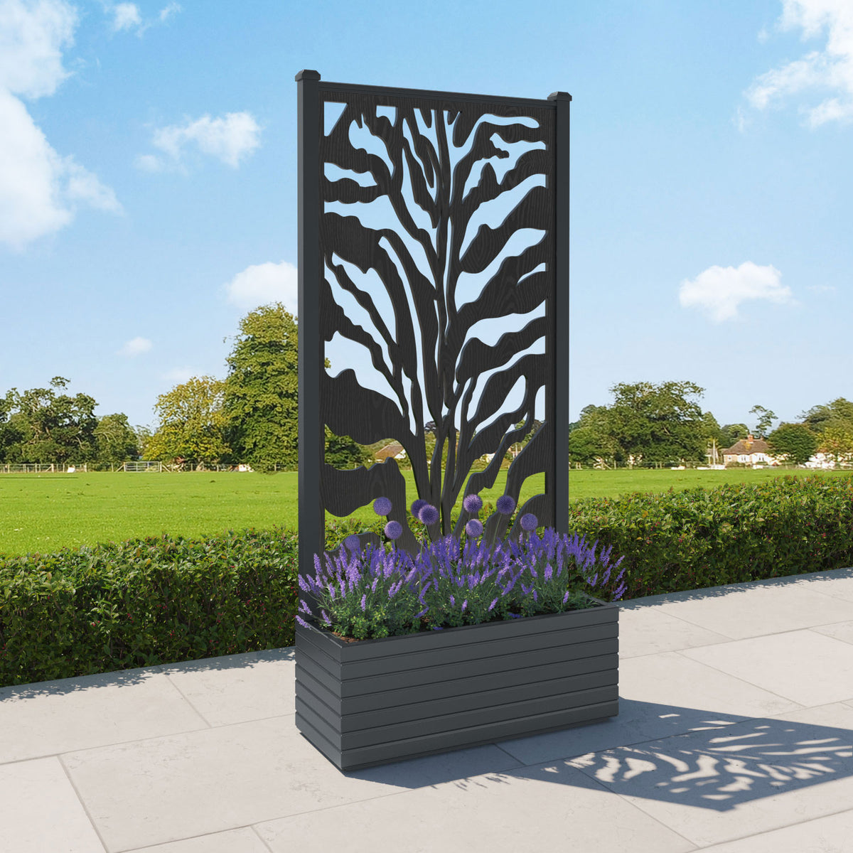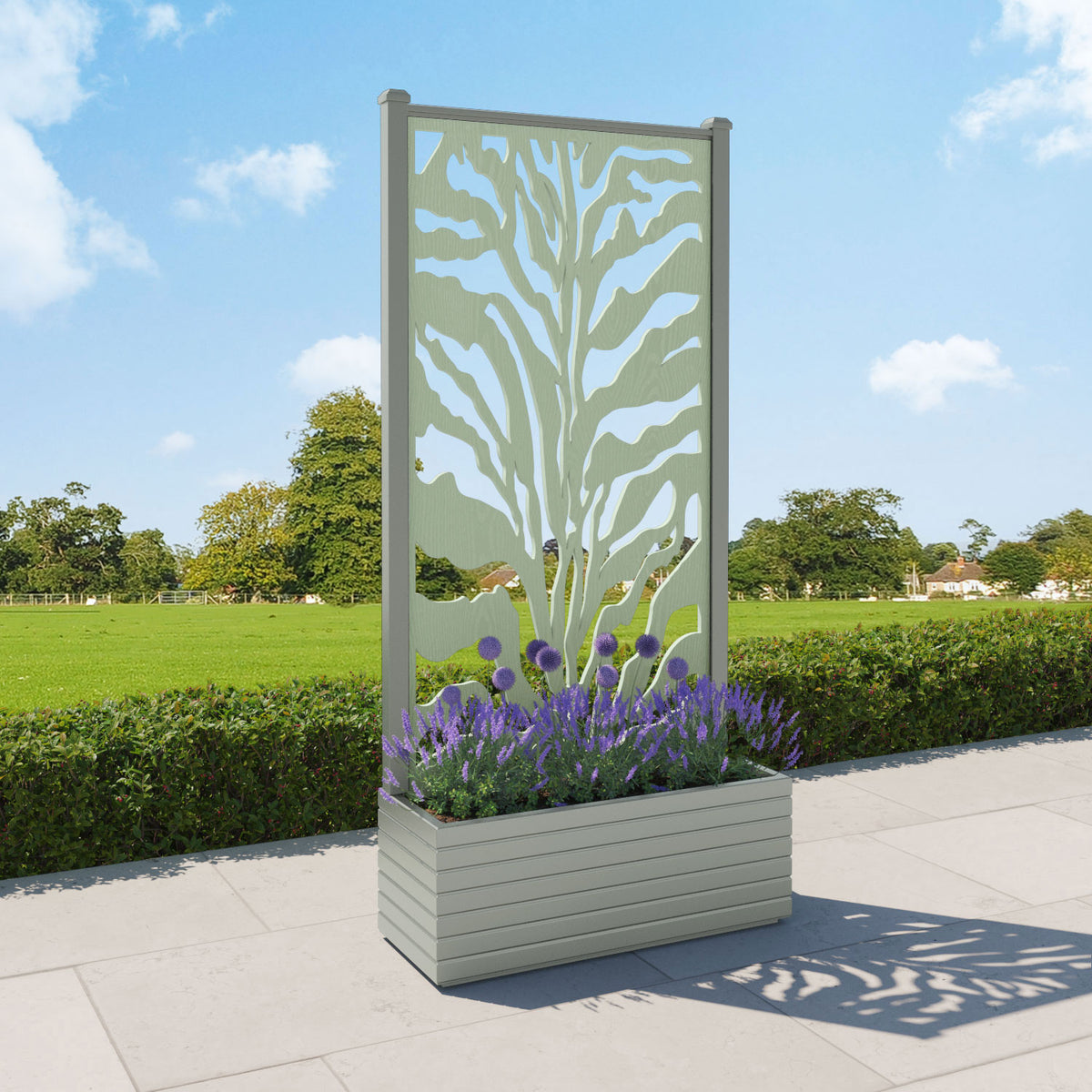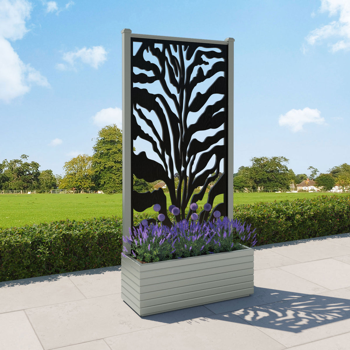 The planters are available in 6 different sizes and can be paired with any of our decorative screens that are available in 5 different colour options. The screens can be fixed at the back or in the centre of the planter. The centre option enables you to plant on both sides of the screen. They can also be ordered with a wheeled base for convenience, with lockable wheels for stability.