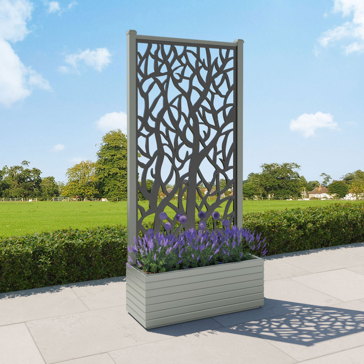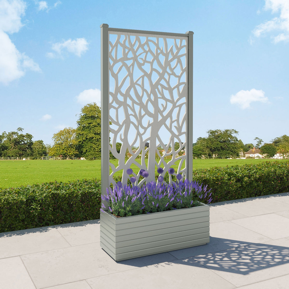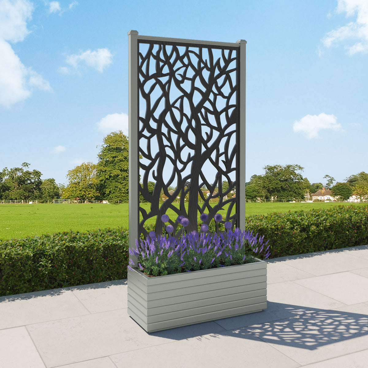 The planters are available in 6 different sizes and can be paired with any of our decorative screens that are available in 5 different colour options. The screens can be fixed at the back or in the centre of the planter. The centre option enables you to plant on both sides of the screen. They can also be ordered with a wheeled base for convenience, with lockable wheels for stability.