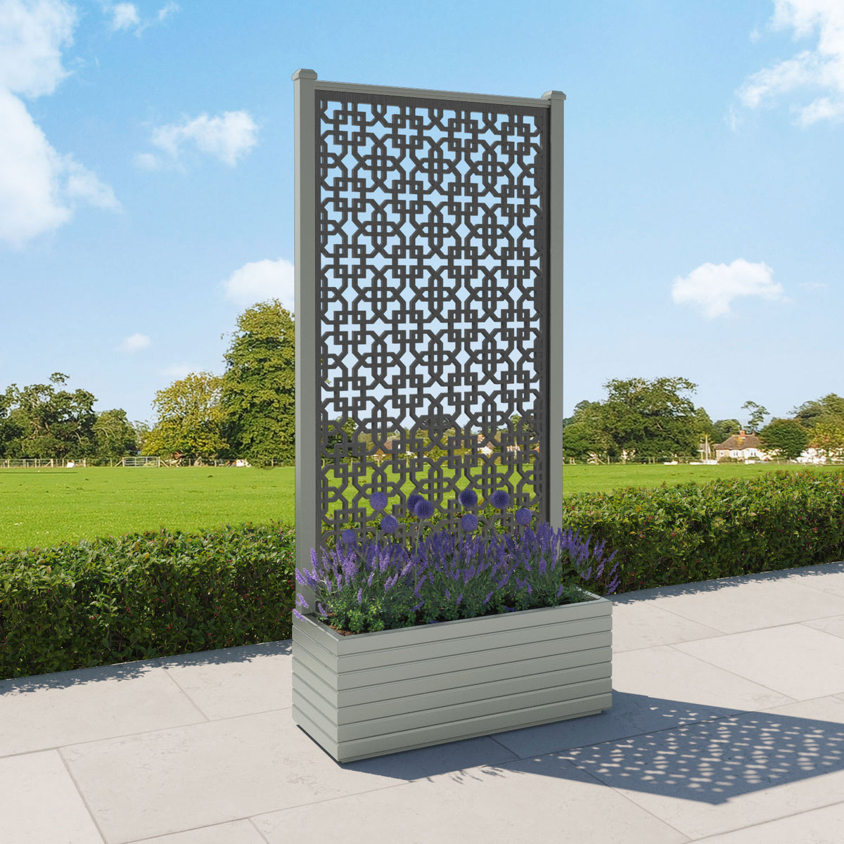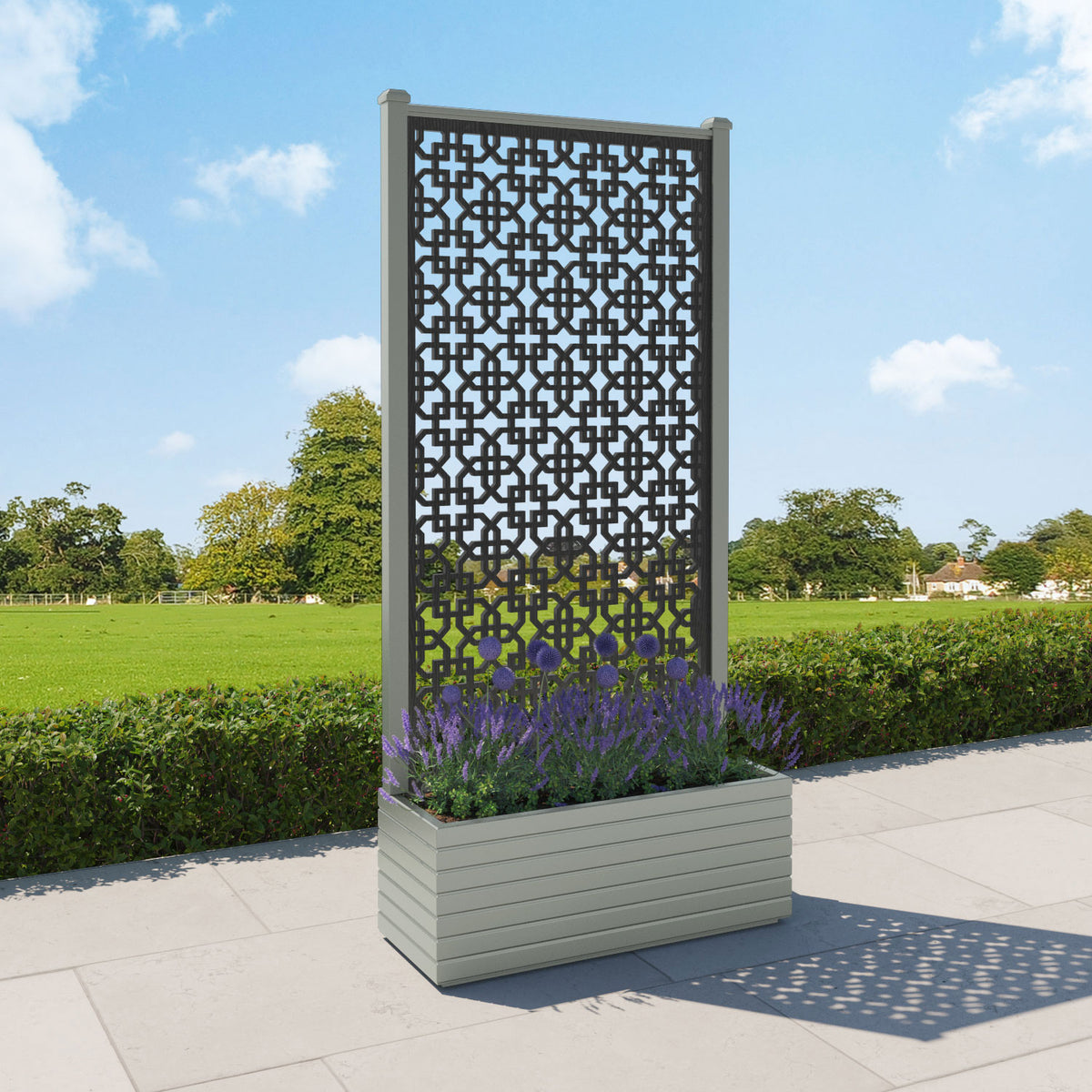The planters are available in 6 different sizes and can be paired with any of our decorative screens that are available in 5 different colour options. The screens can be fixed at the back or in the centre of the planter. The centre option enables you to plant on both sides of the screen. They can also be ordered with a wheeled base for convenience, with lockable wheels for stability.