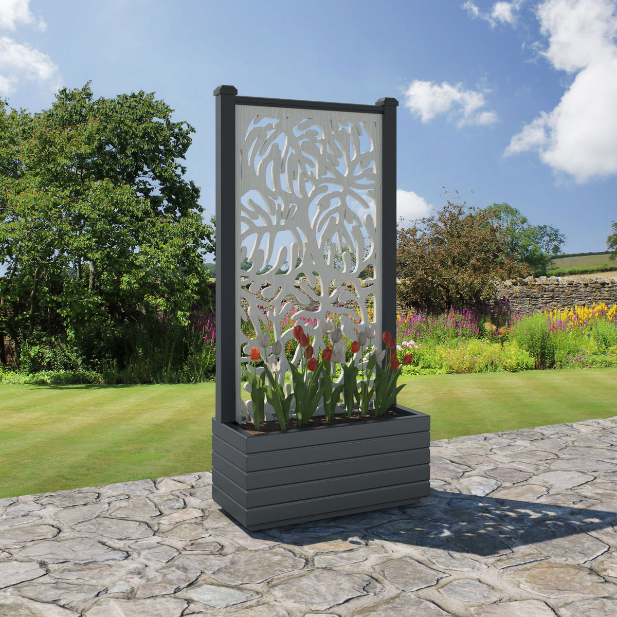 The planters are available in 6 different sizes and can be paired with any of our decorative screens that are available in 5 different colour options. The screens can be fixed at the back or in the centre of the planter. The centre option enables you to plant on both sides of the screen. They can also be ordered with a wheeled base for convenience, with lockable wheels for stability.