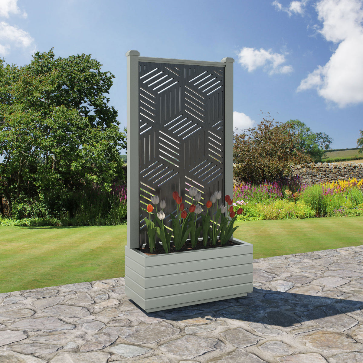 The planters are available in 6 different sizes and can be paired with any of our decorative screens that are available in 5 different colour options. The screens can be fixed at the back or in the centre of the planter. The centre option enables you to plant on both sides of the screen. They can also be ordered with a wheeled base for convenience, with lockable wheels for stability.