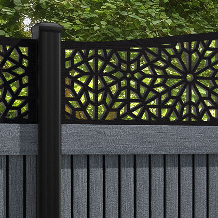 Virtis Alnara Curved Top Fence Panel Anthracite - with our aluminium posts