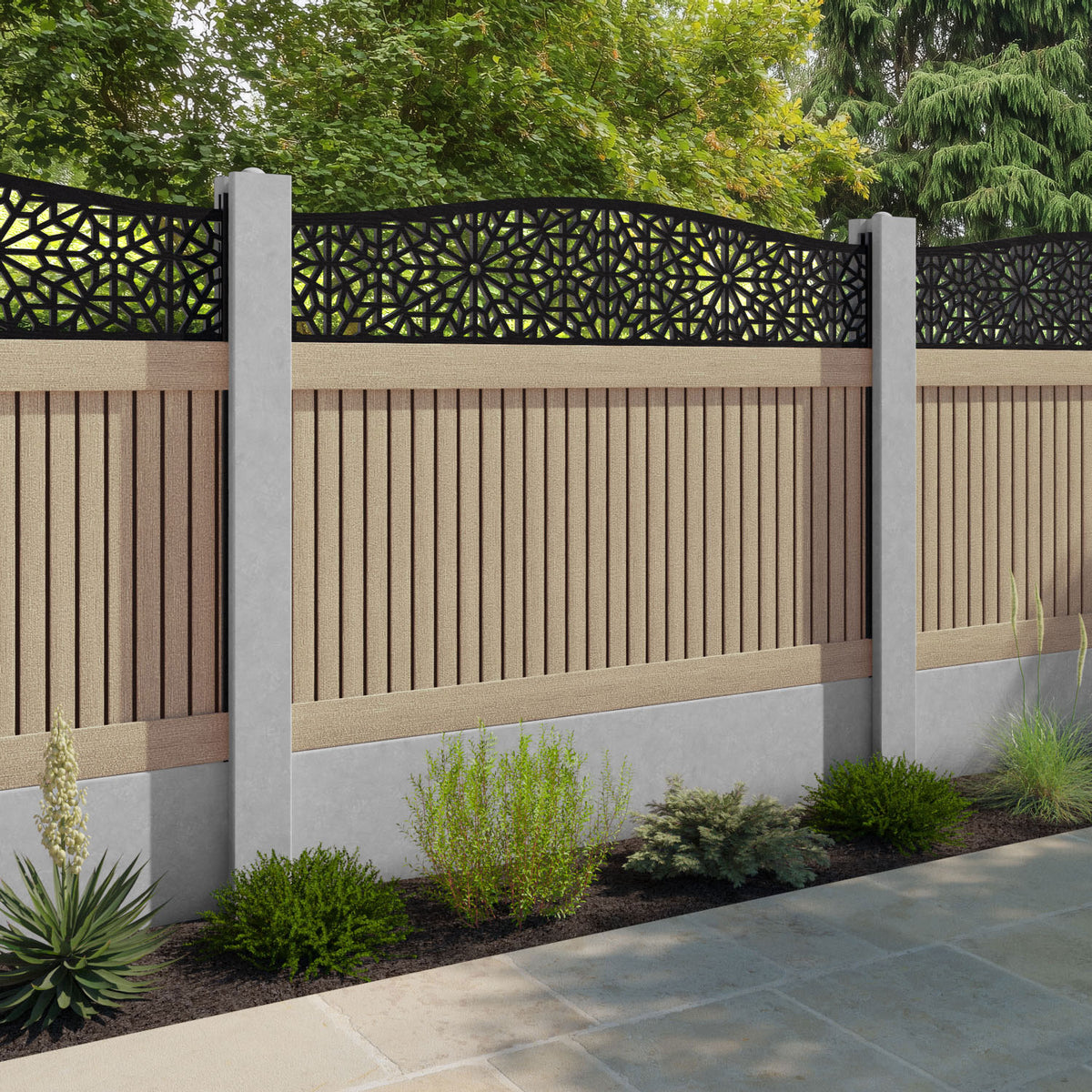 Virtis Alnara Curved Top Fence Panel Light Oak - for existing concrete posts