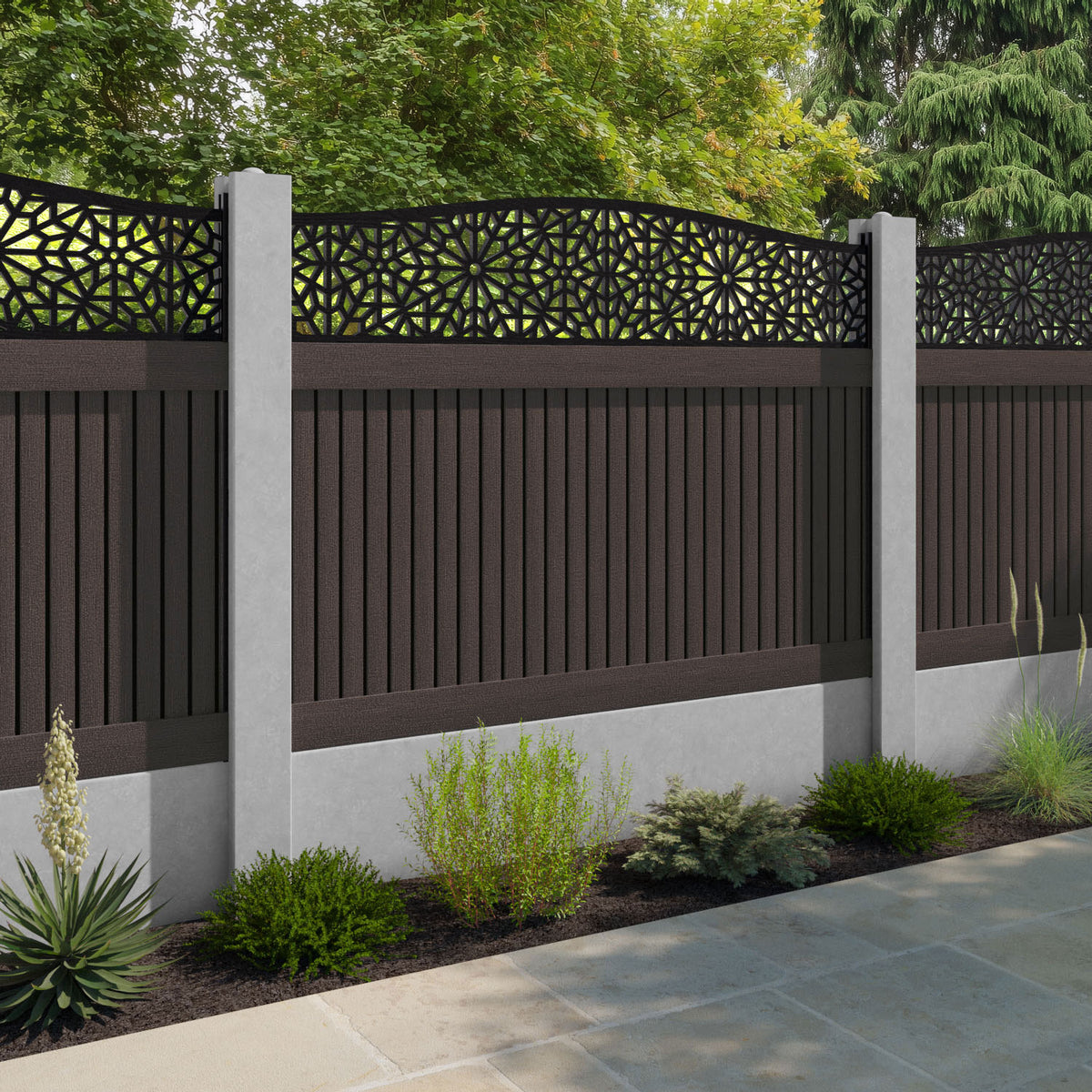 Virtis Alnara Curved Top Fence Panel Mid Brown - for existing concrete posts