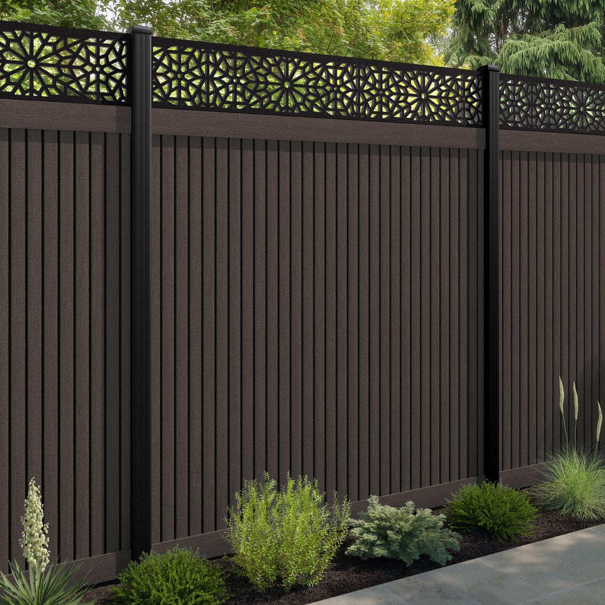 Virtis Alnara Fence Panel Mid Brown - with our aluminium posts