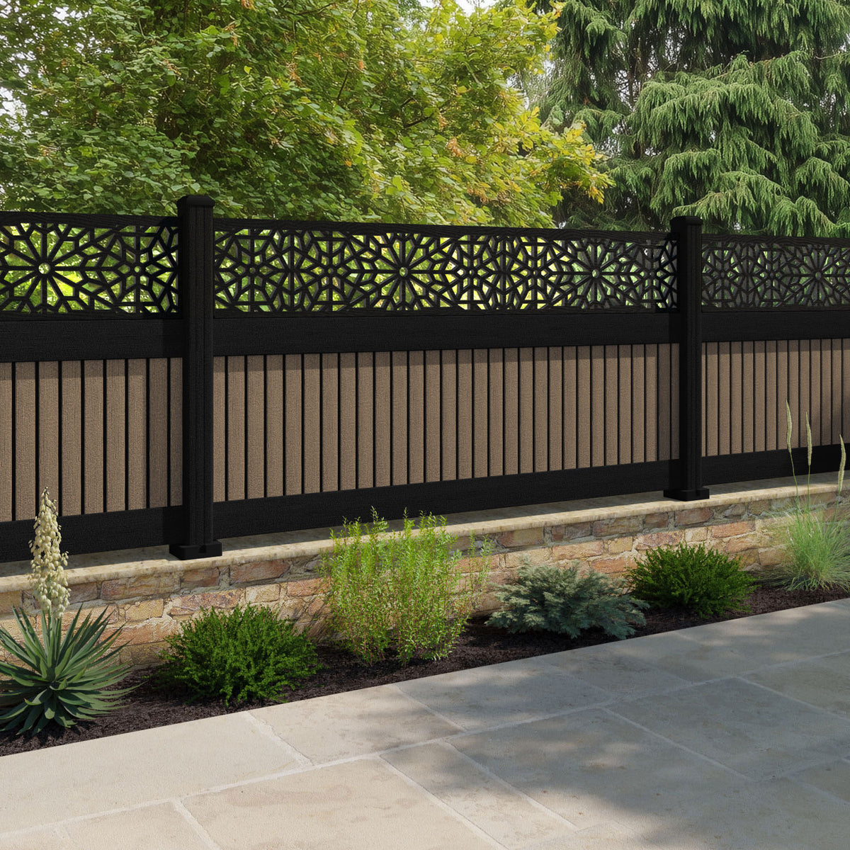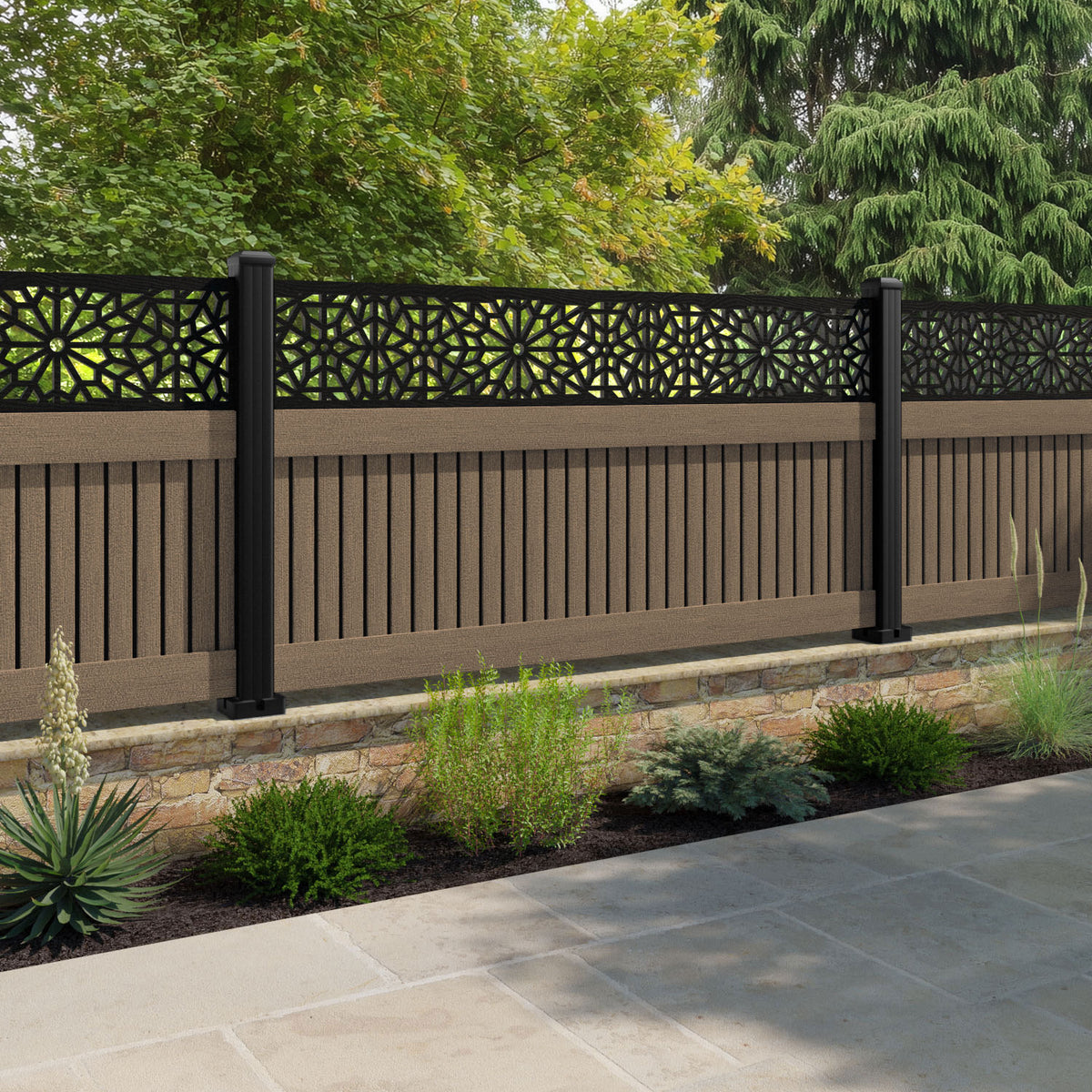 Virtis Alnara Fence Panel Teak - with our aluminium posts