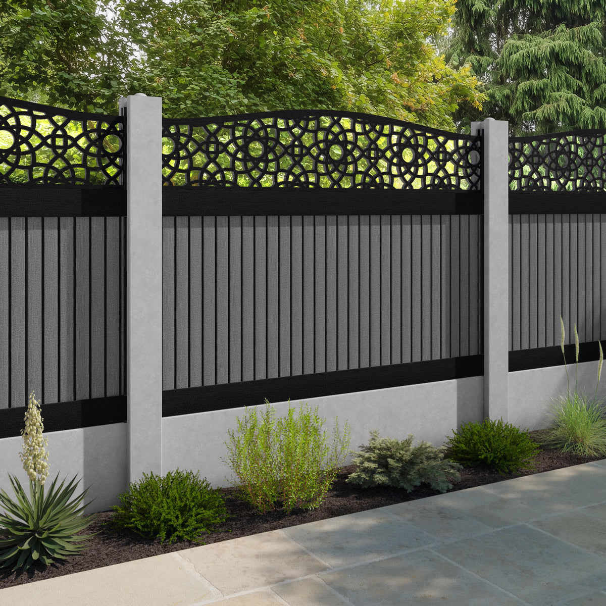 Virtis Ambar Curved Top Fence Panel Mid Grey - for existing concrete posts