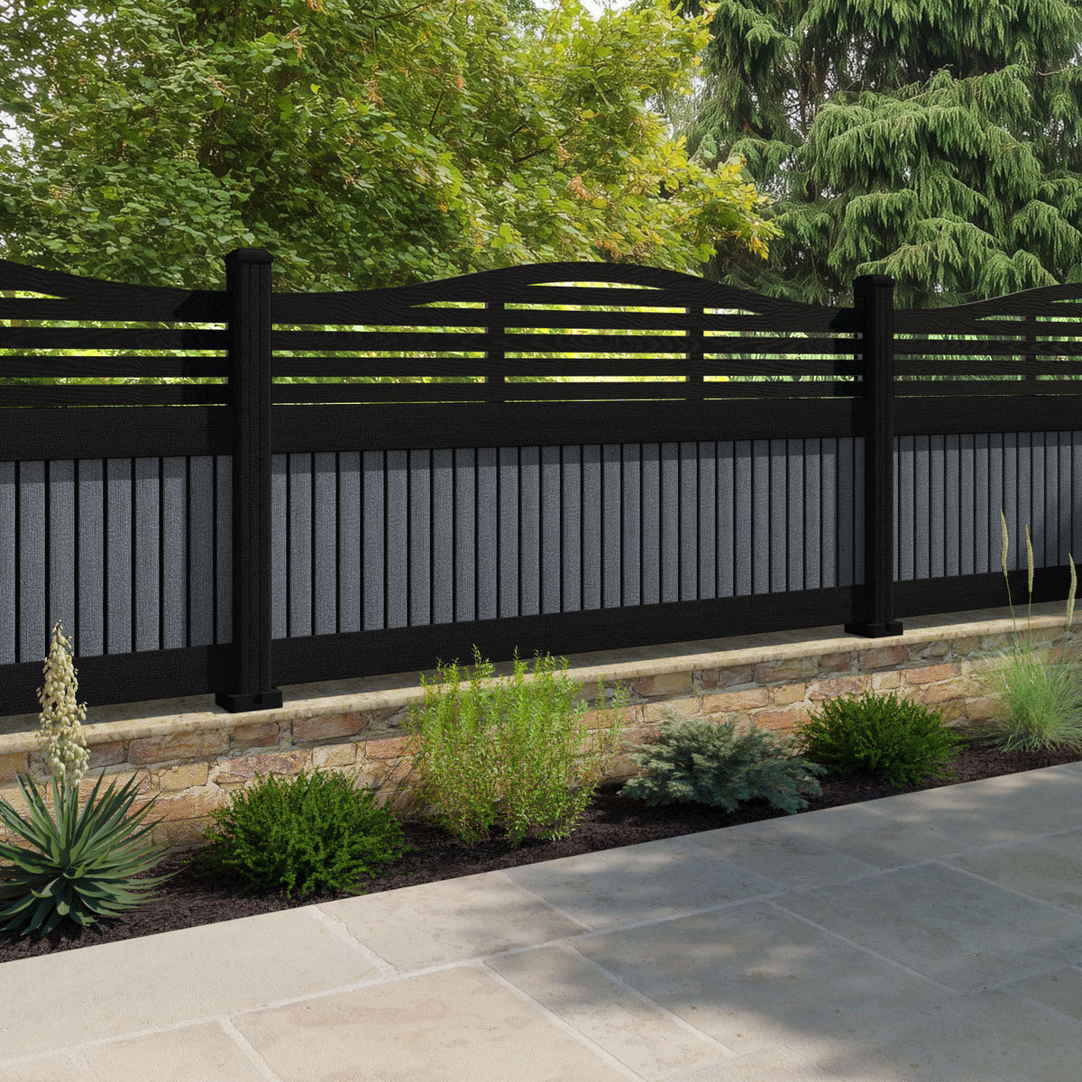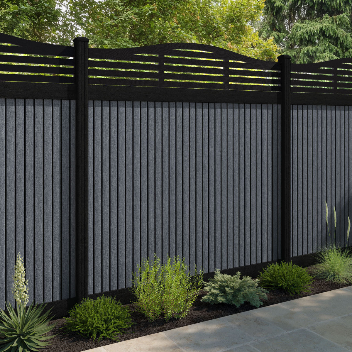 Virtis Aspen Curved Top Fence Panel Anthracite - with our aluminium posts