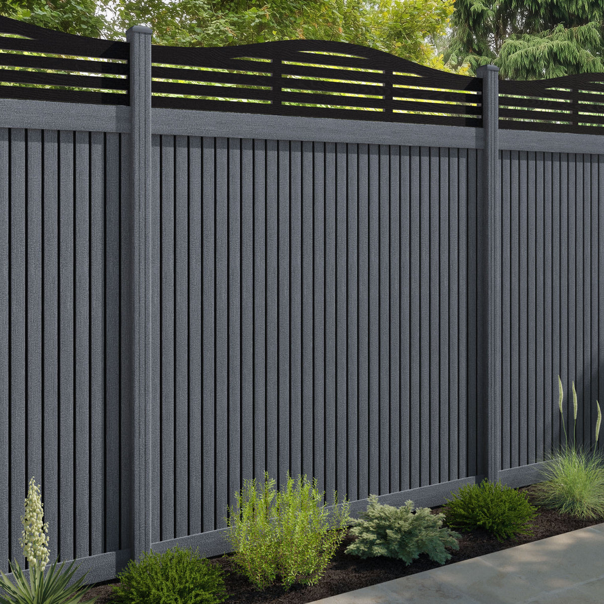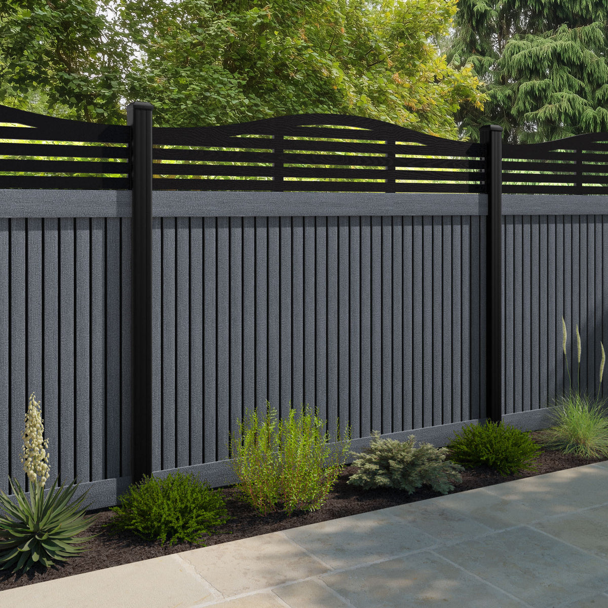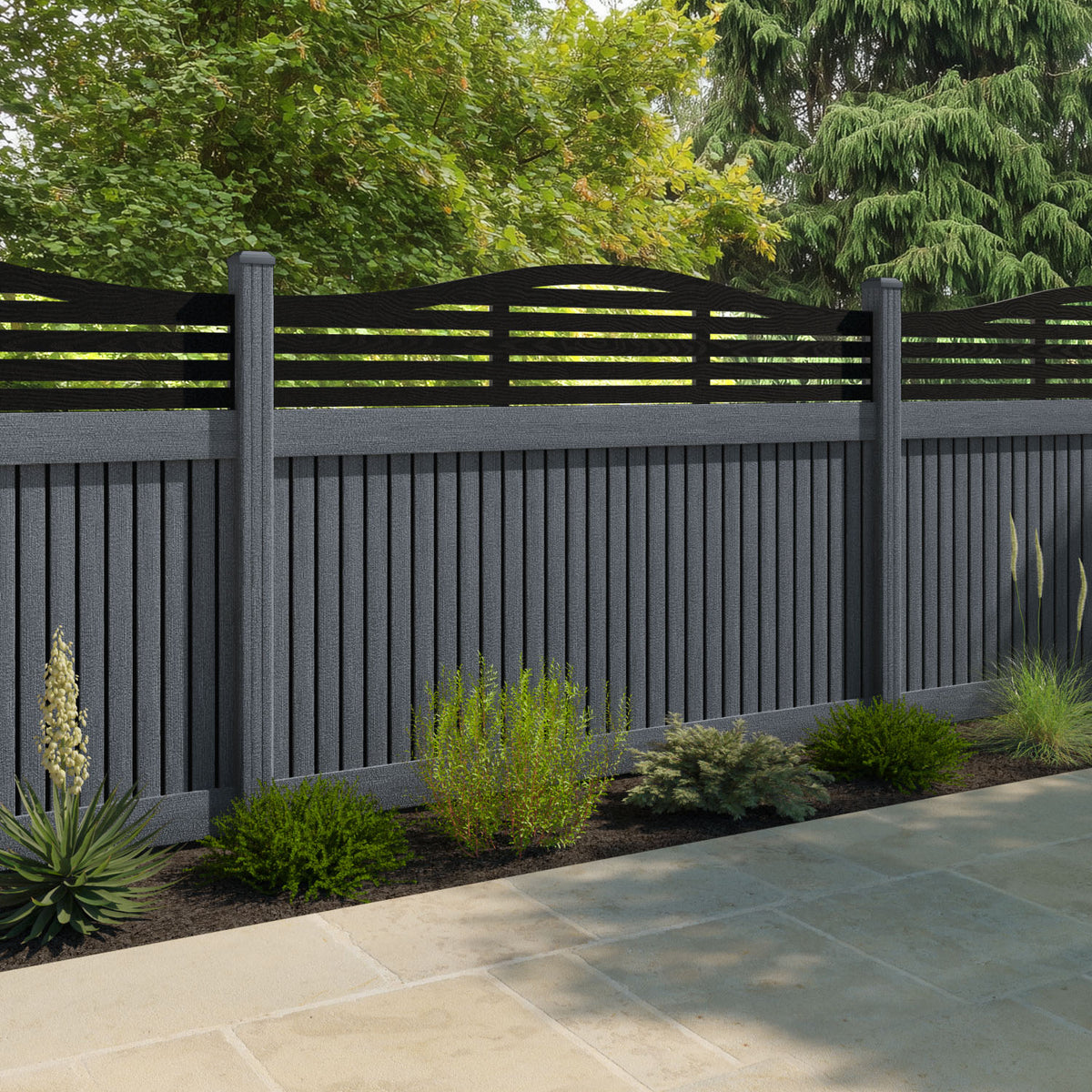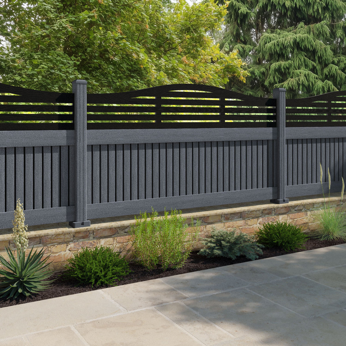Virtis Aspen Curved Top Fence Panel Anthracite - with our composite posts