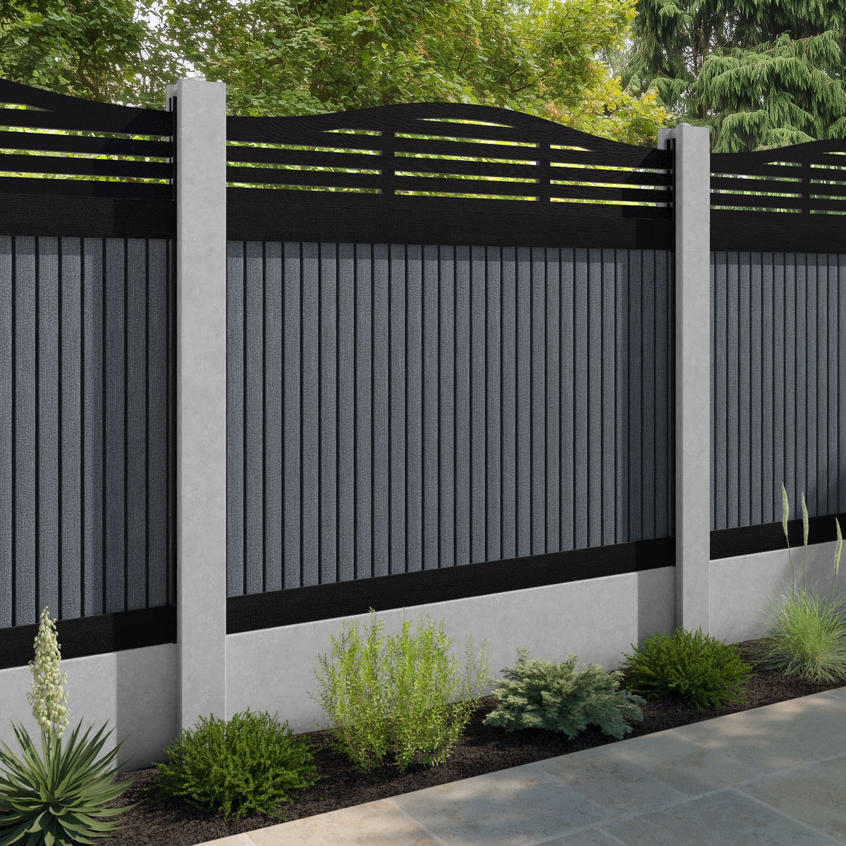 Virtis Aspen Curved Top Fence Panel Anthracite - for existing concrete posts