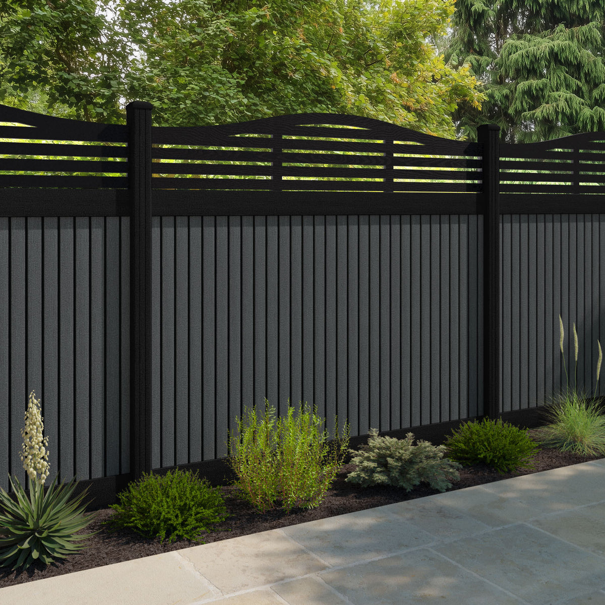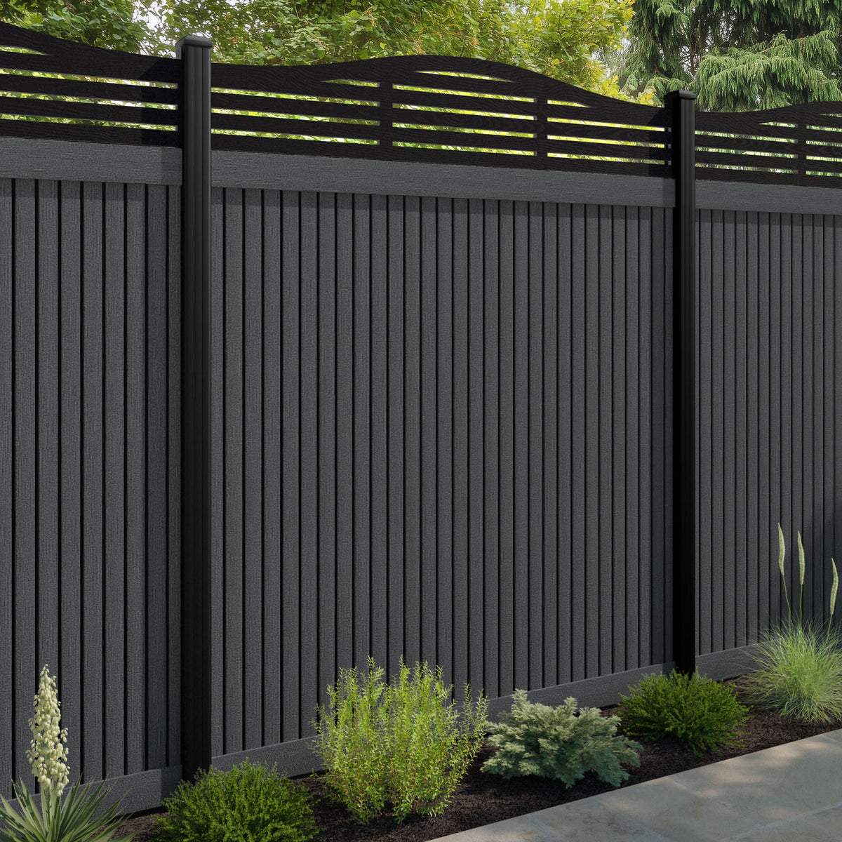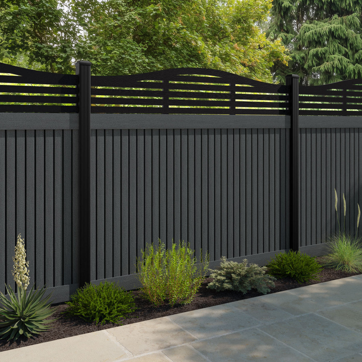 Virtis Aspen Curved Top Fence Panel Dark Grey - with our aluminium posts