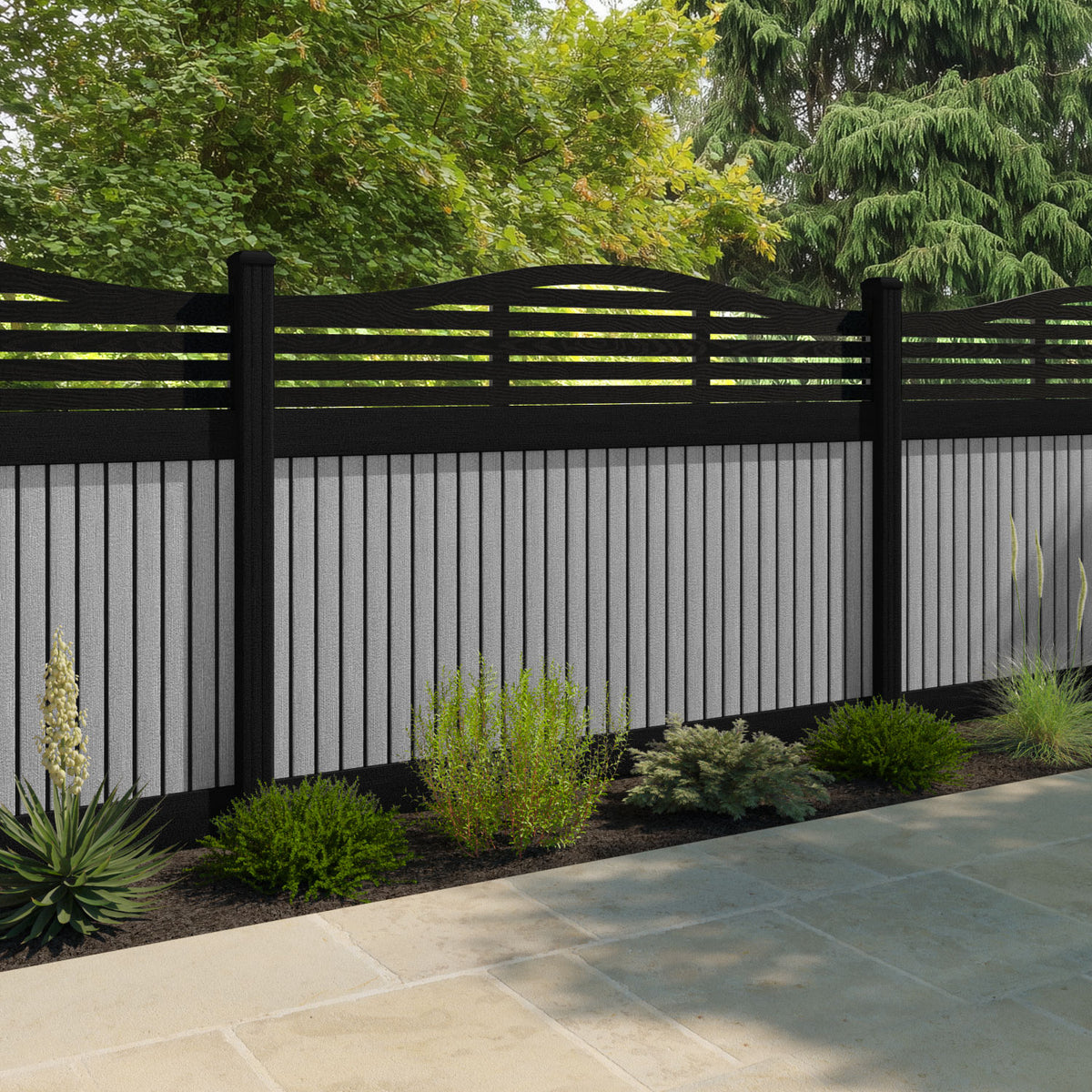 Virtis Aspen Curved Top Fence Panel Light Grey - with our aluminium posts