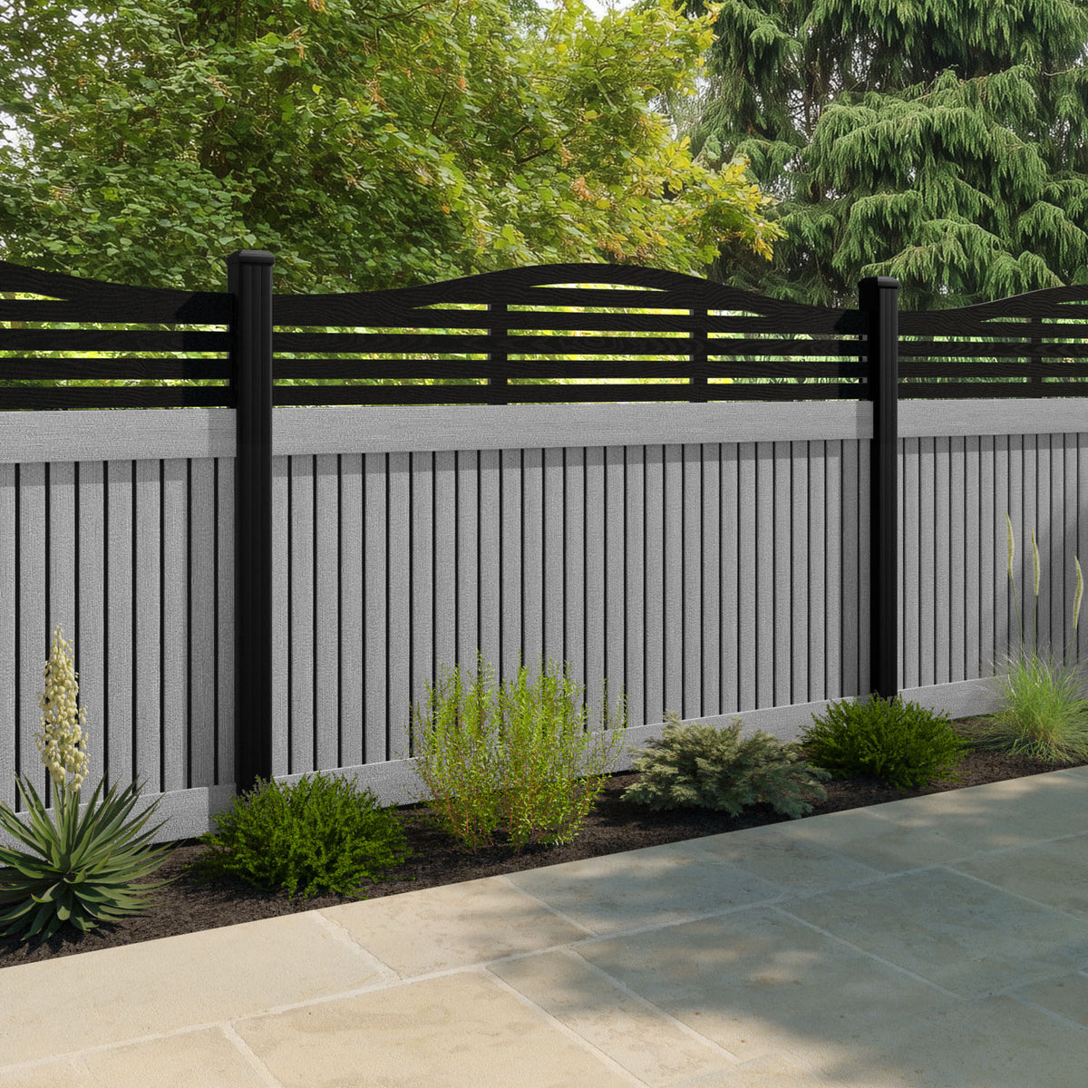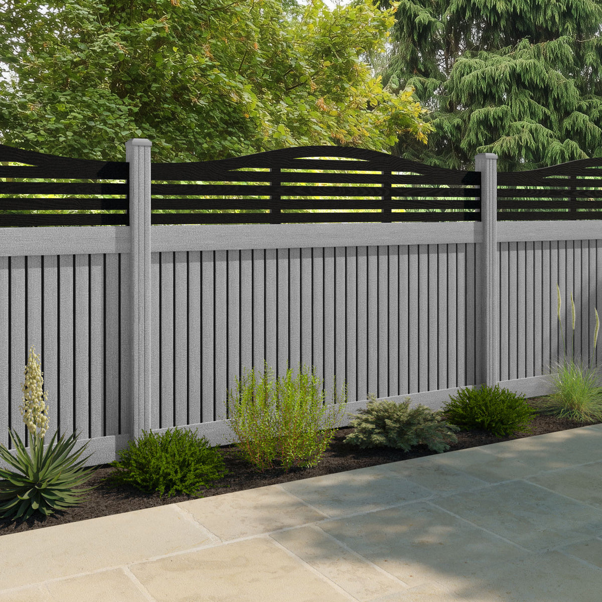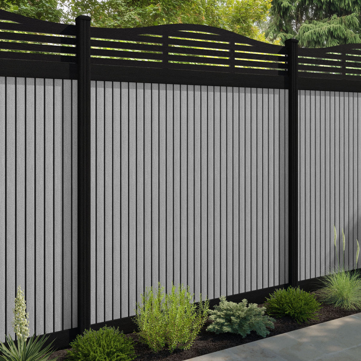 Virtis Aspen Curved Top Fence Panel Light Grey - with our composite posts