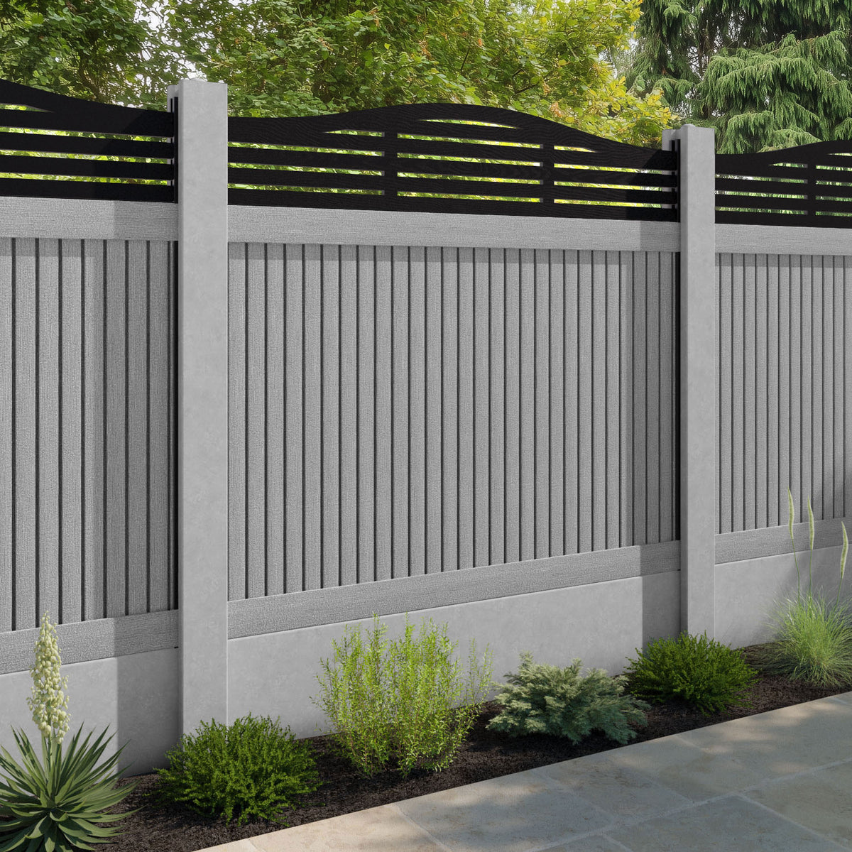 Virtis Aspen Curved Top Fence Panel Light Grey - for existing concrete posts