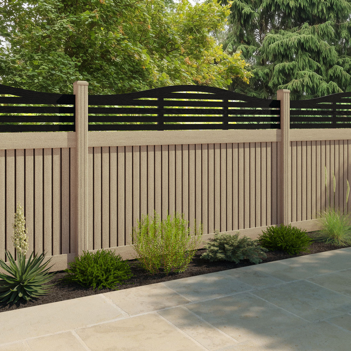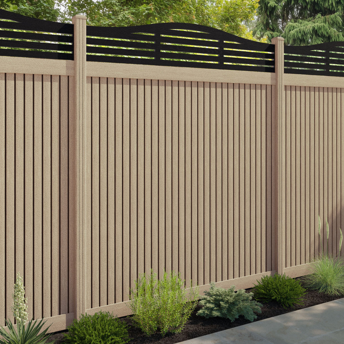 Virtis Aspen Curved Top Fence Panel Light Oak - with our composite posts