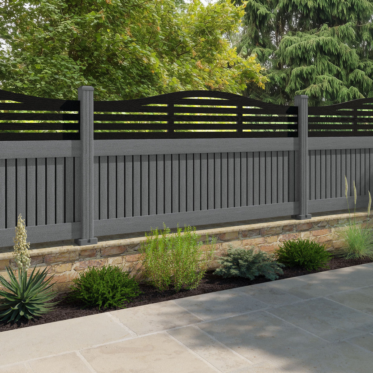Virtis Aspen Curved Top Fence Panel Mid Grey - with our composite posts