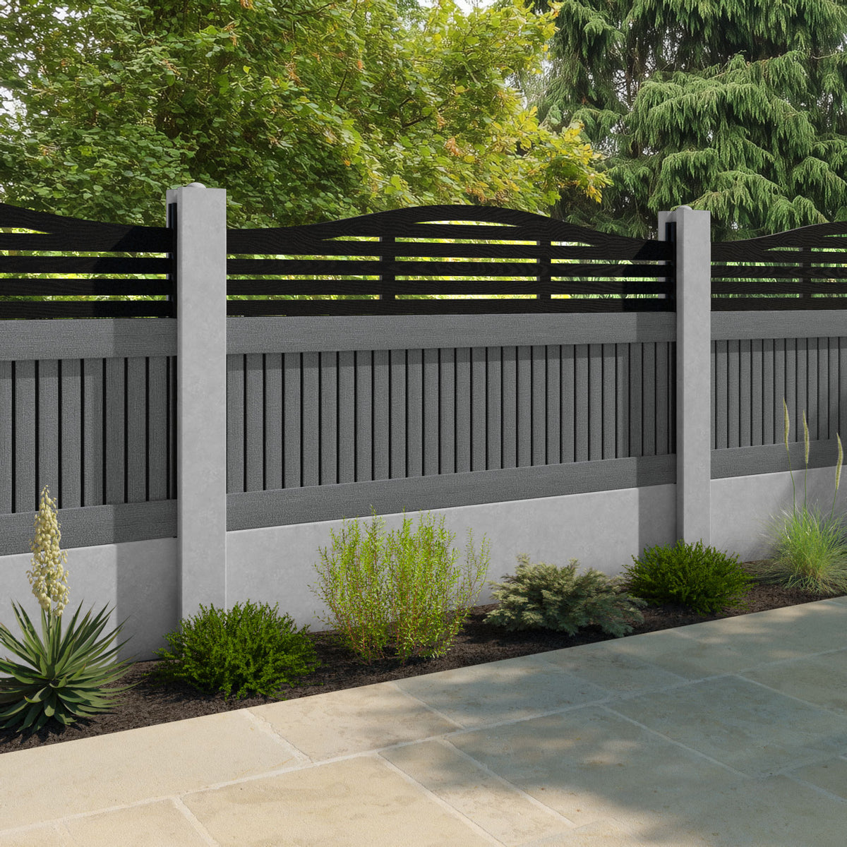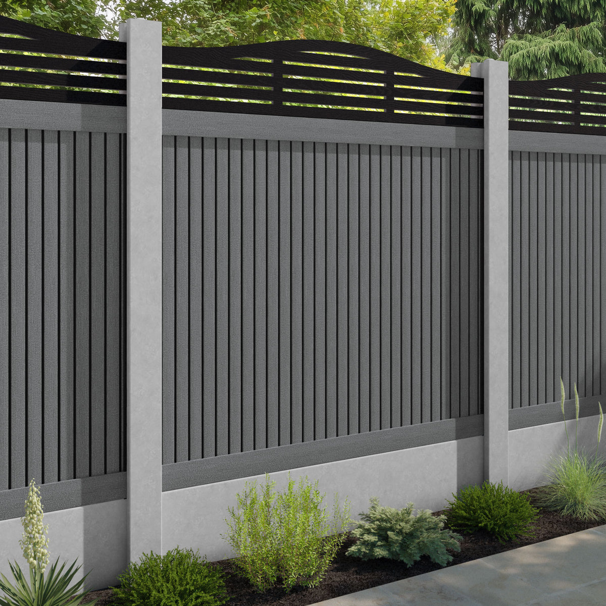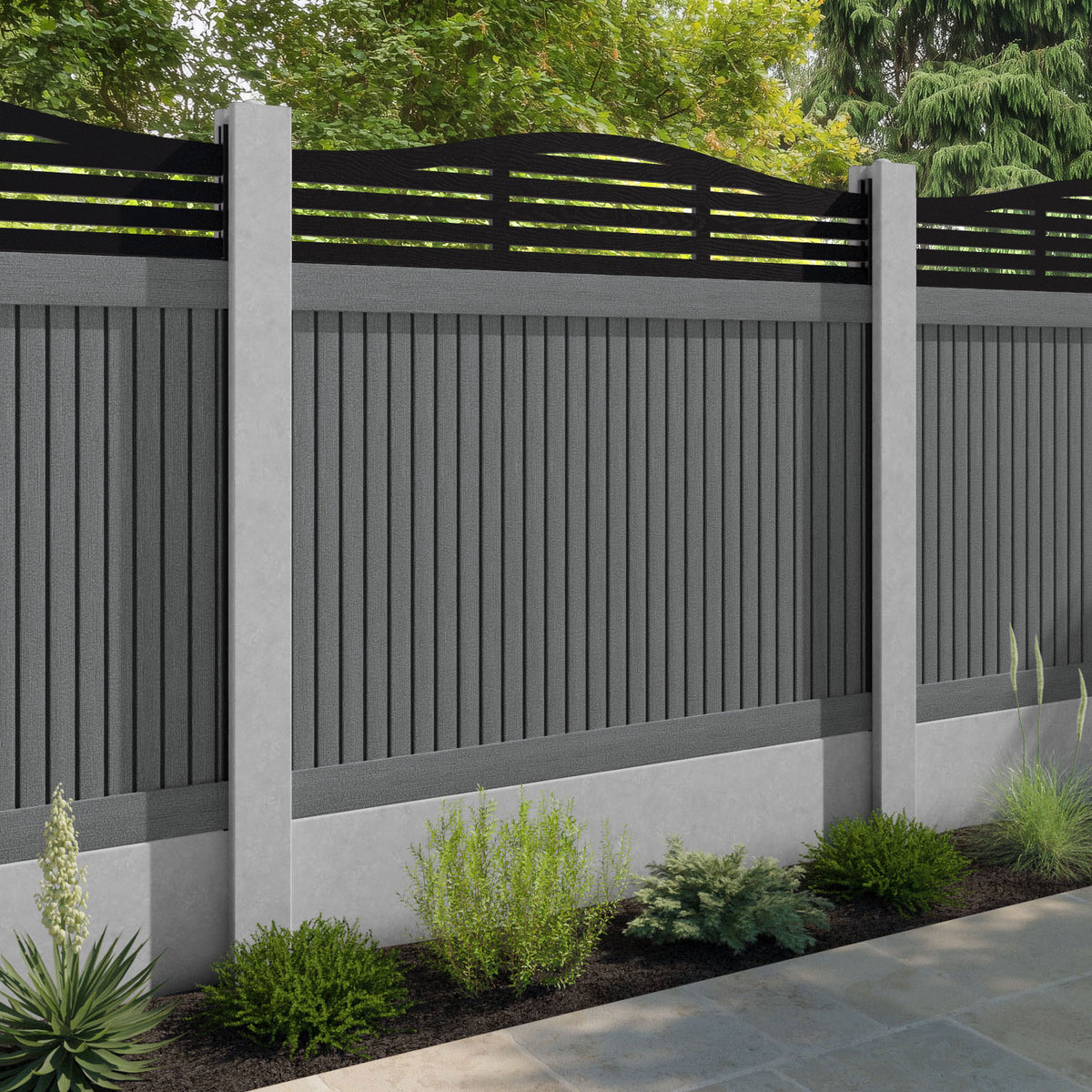 Virtis Aspen Curved Top Fence Panel Mid Grey - for existing concrete posts