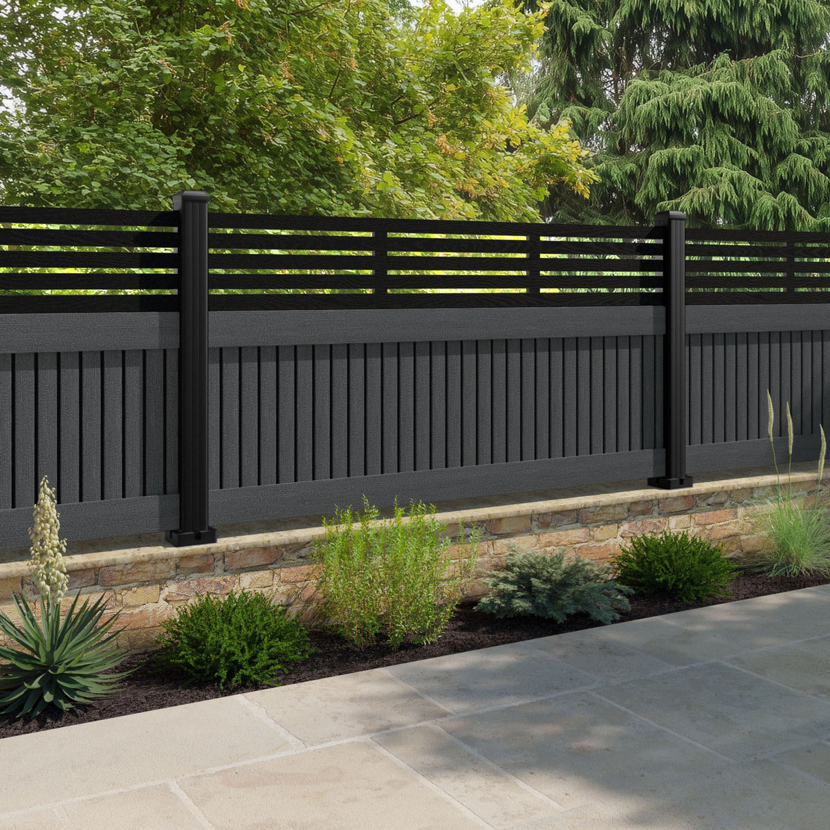 Virtis Aspen Fence Panel Dark Grey - with our composite posts