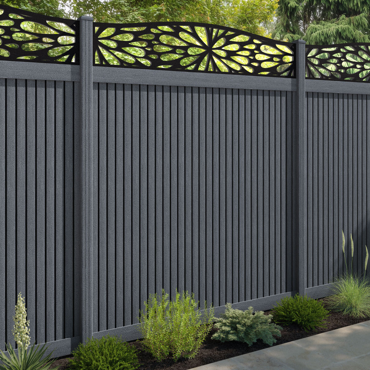 Virtis Blossom Curved Top Fence Panel Anthracite - with our composite posts