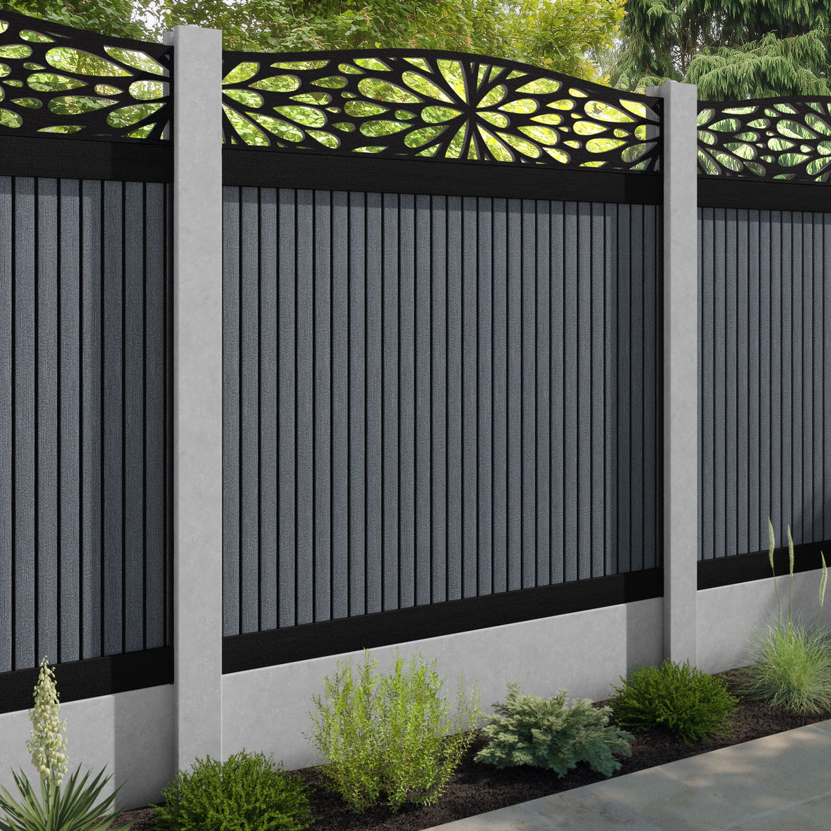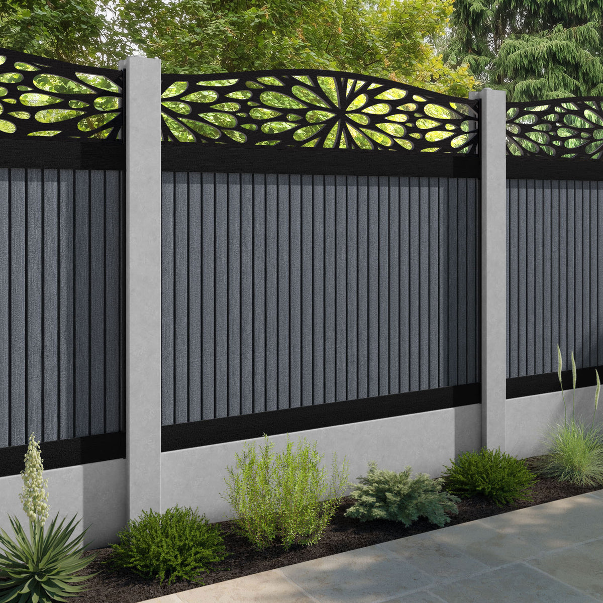 Virtis Blossom Curved Top Fence Panel Anthracite - for existing concrete posts