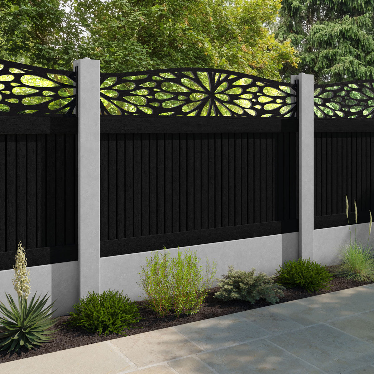Virtis Blossom Curved Top Fence Panel Black - for existing concrete posts