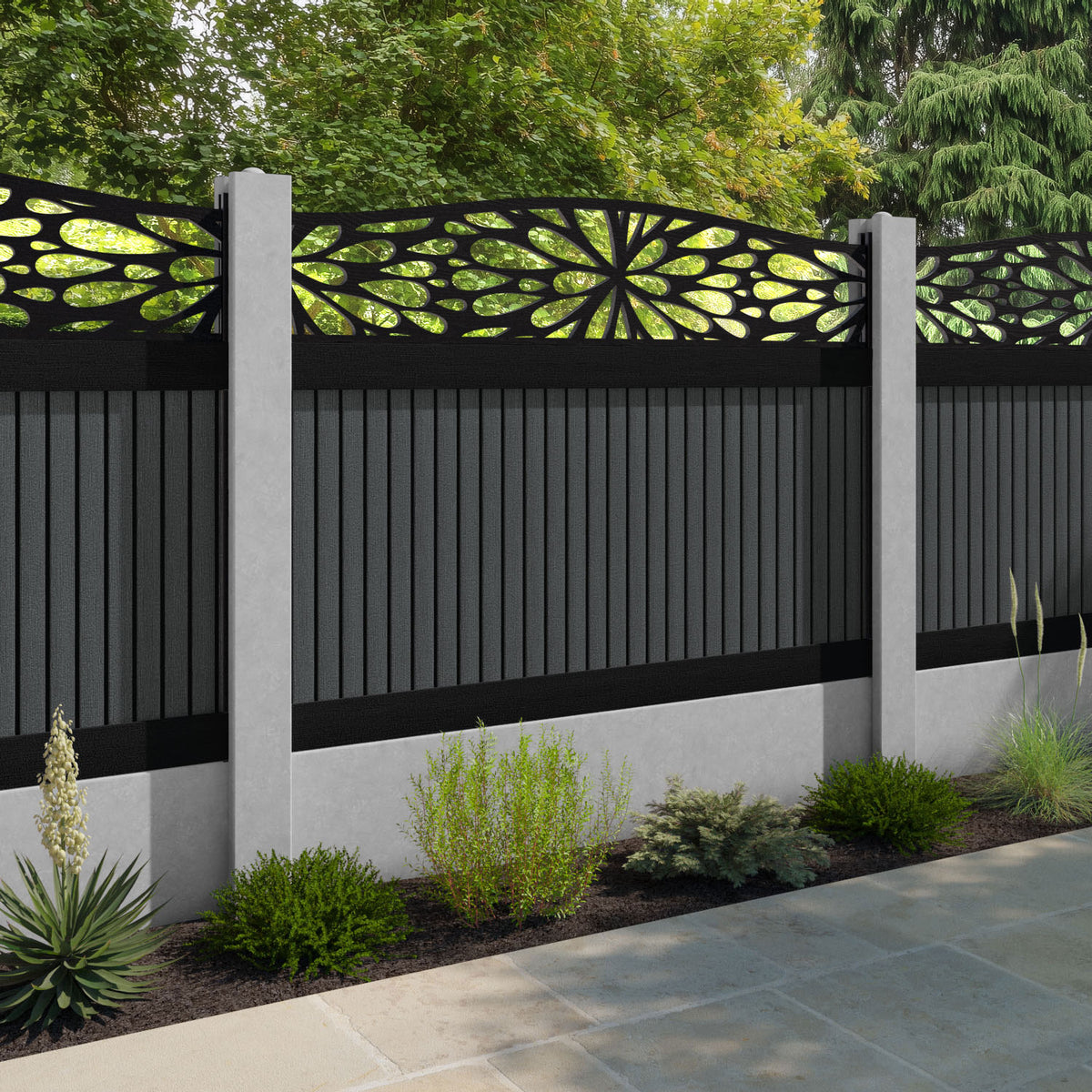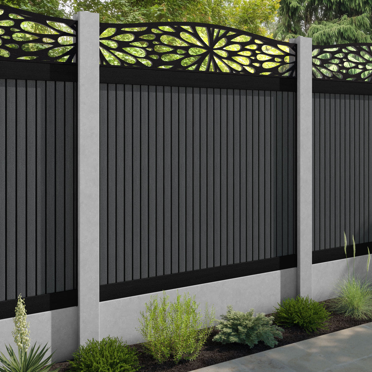 Virtis Blossom Curved Top Fence Panel Dark Grey - for existing concrete posts
