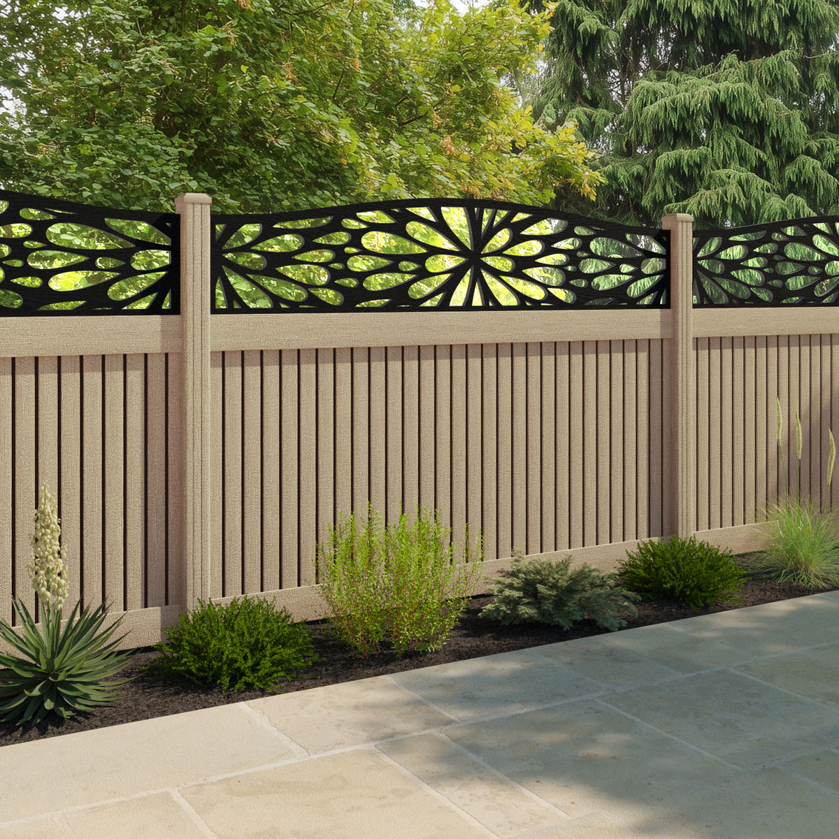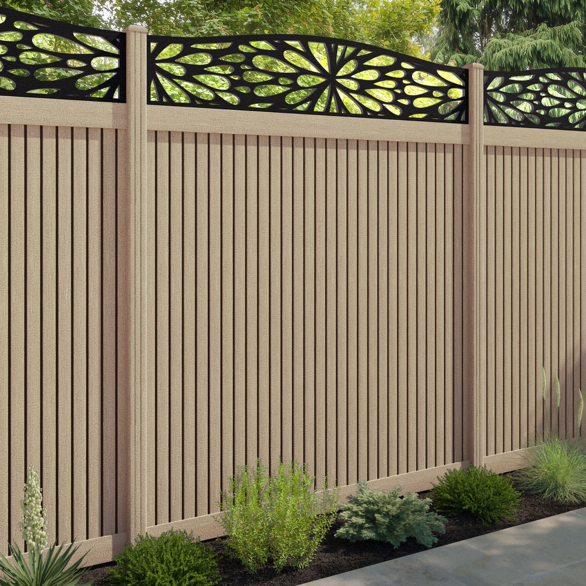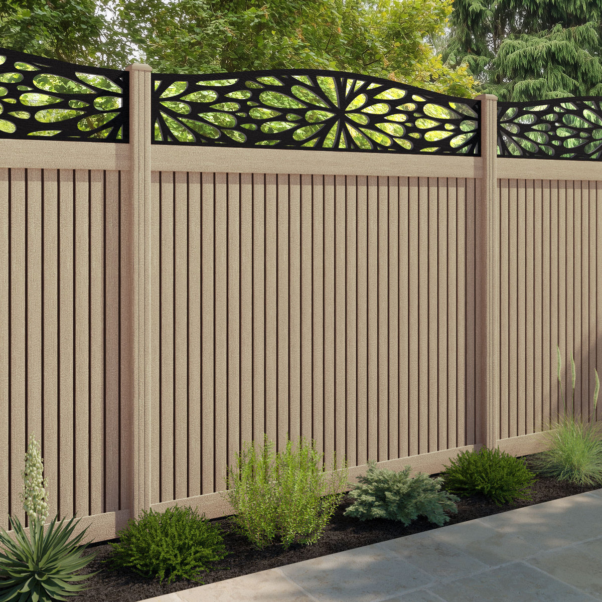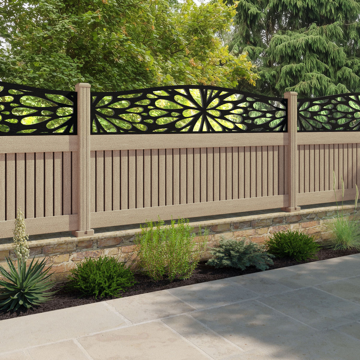 Virtis Blossom Curved Top Fence Panel Light Oak - with our composite posts