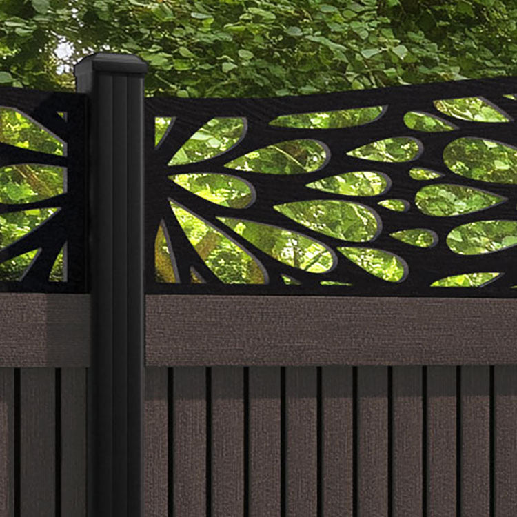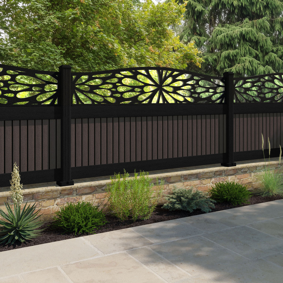 Virtis Blossom Curved Top Fence Panel Mid Brown - with our aluminium posts
