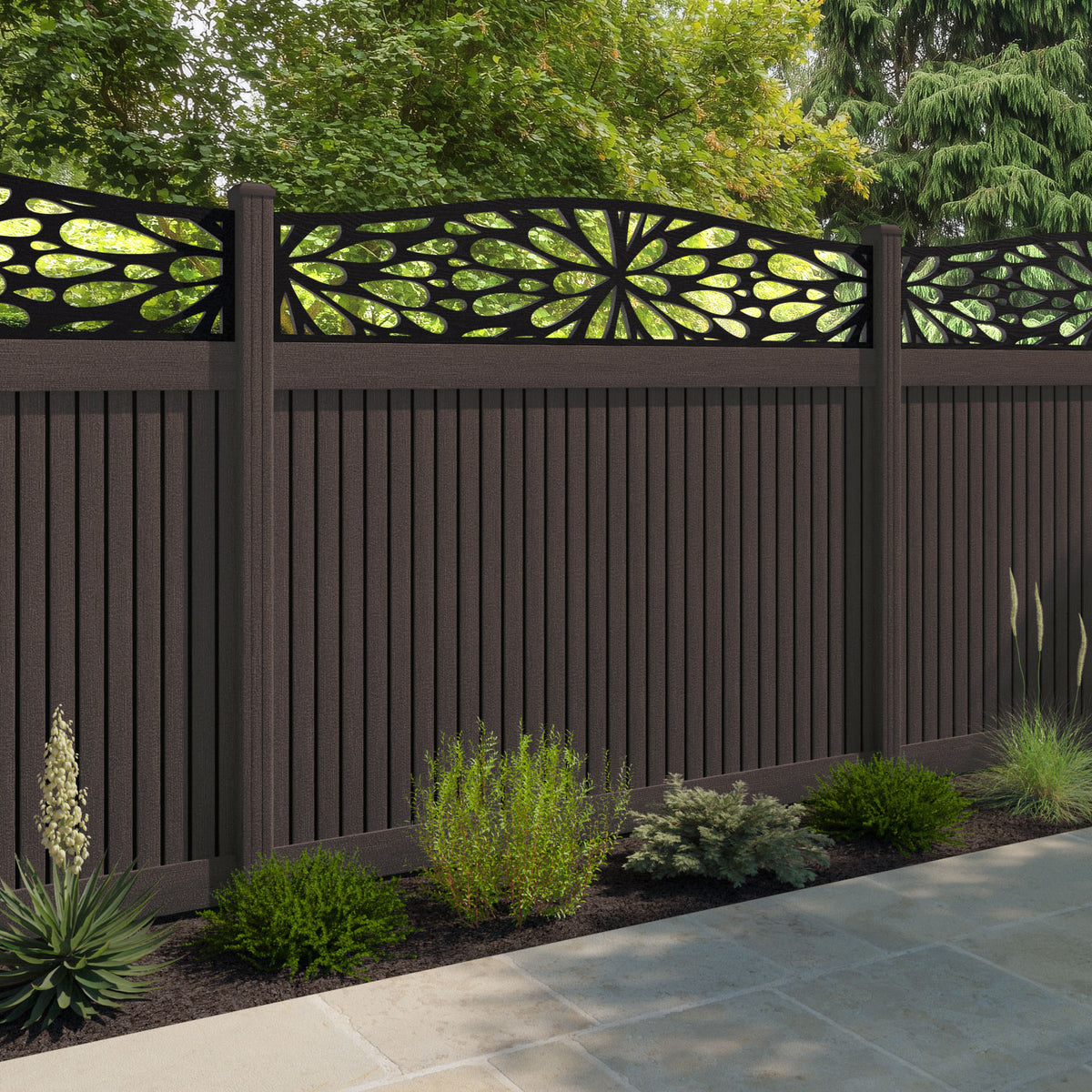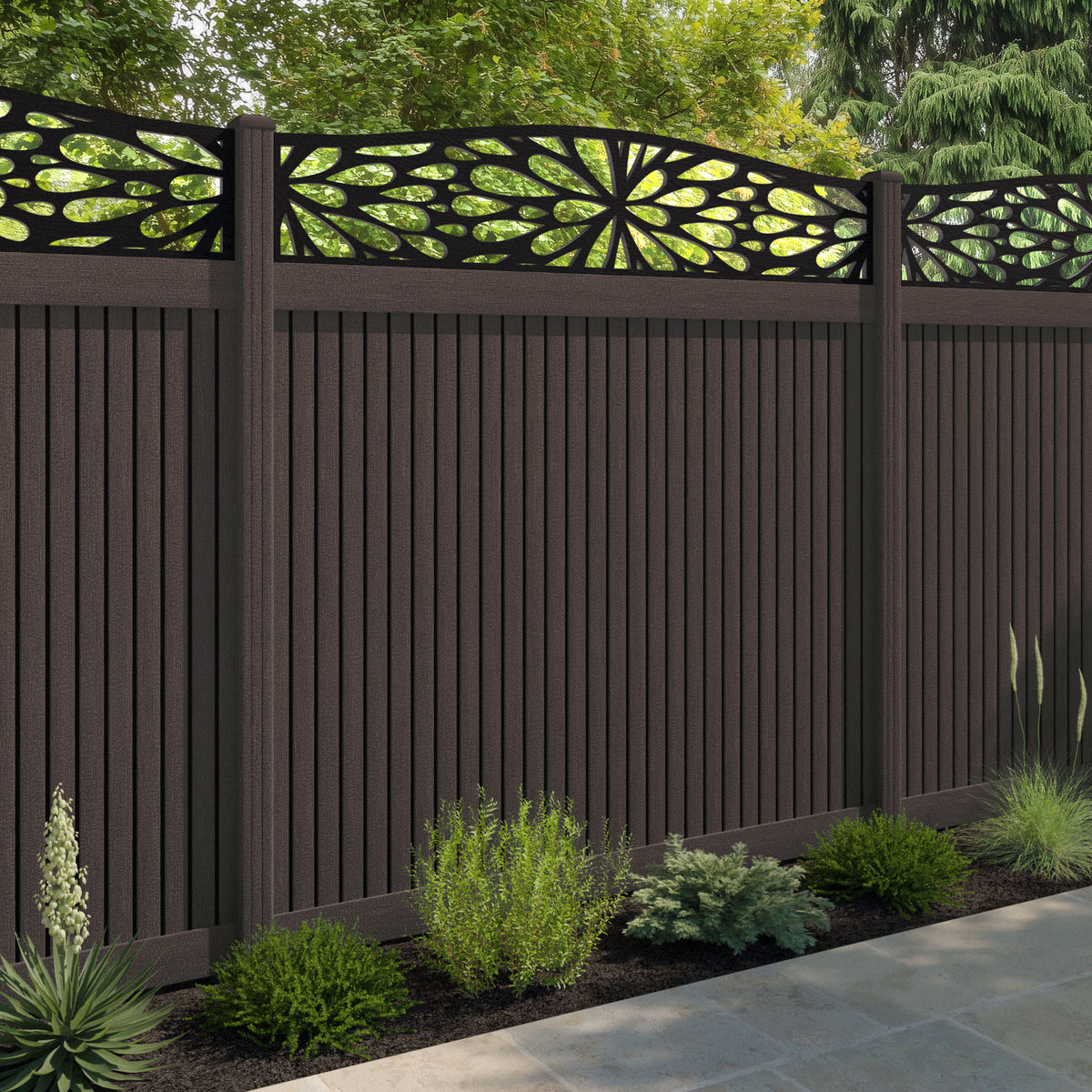 Virtis Blossom Curved Top Fence Panel Mid Brown - with our composite posts