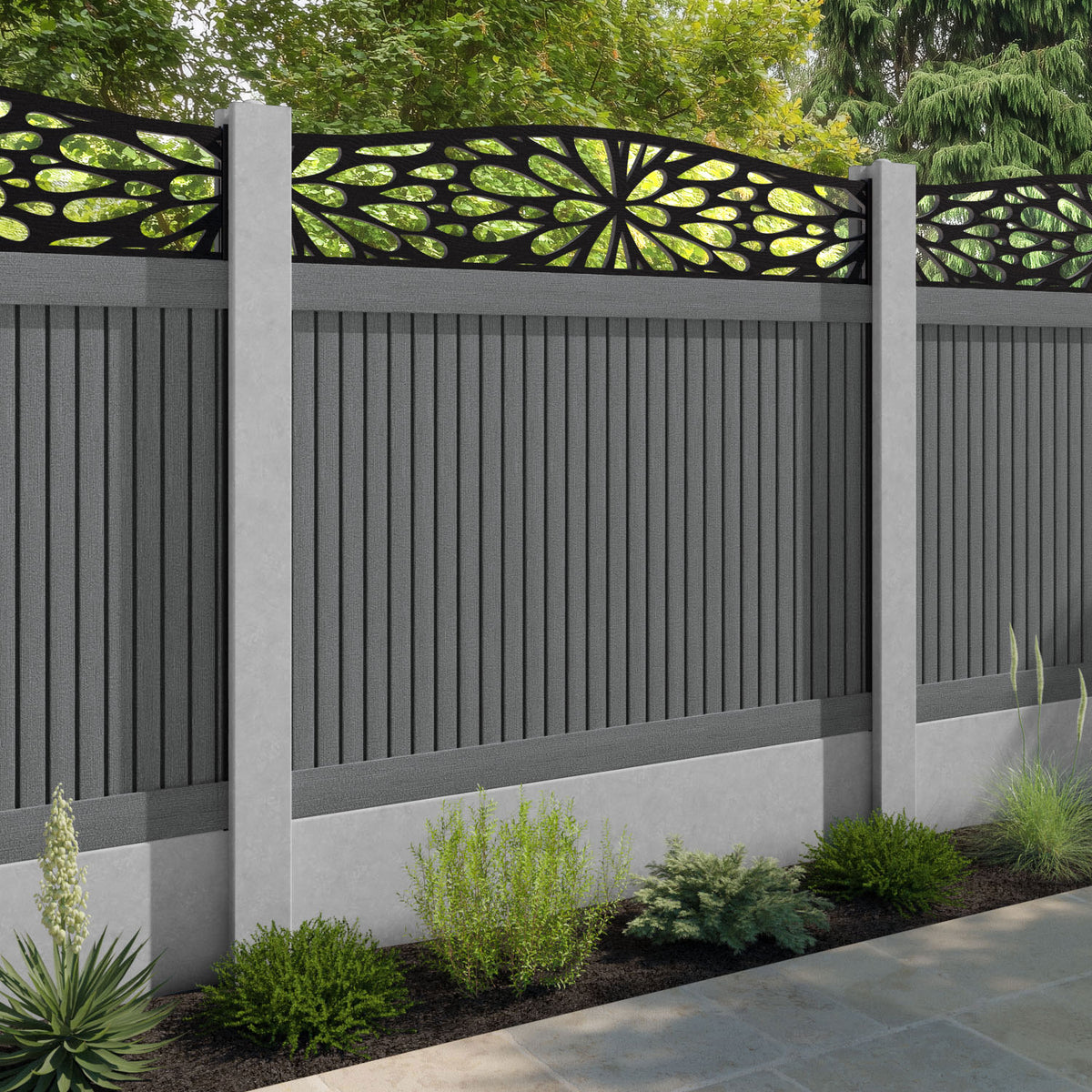 Virtis Blossom Curved Top Fence Panel Mid Grey - for existing concrete posts