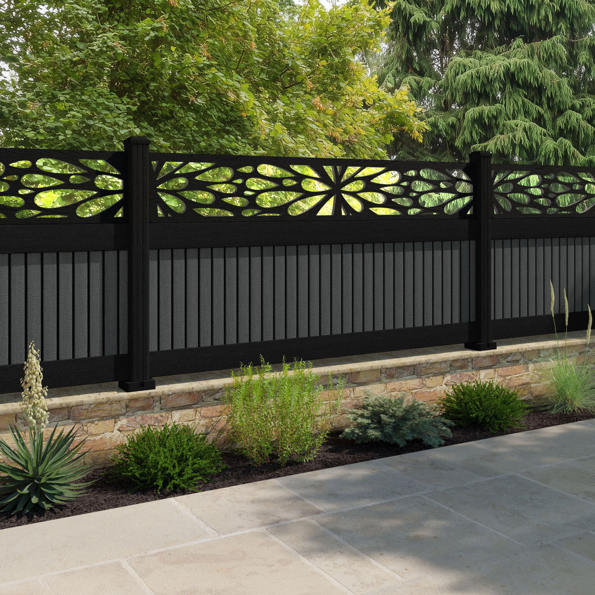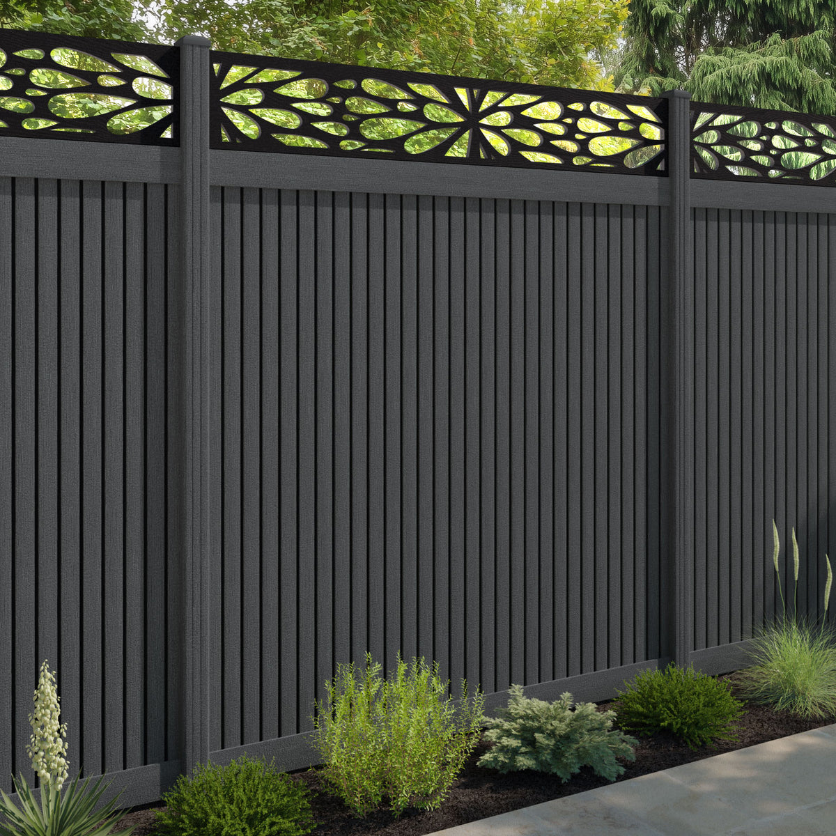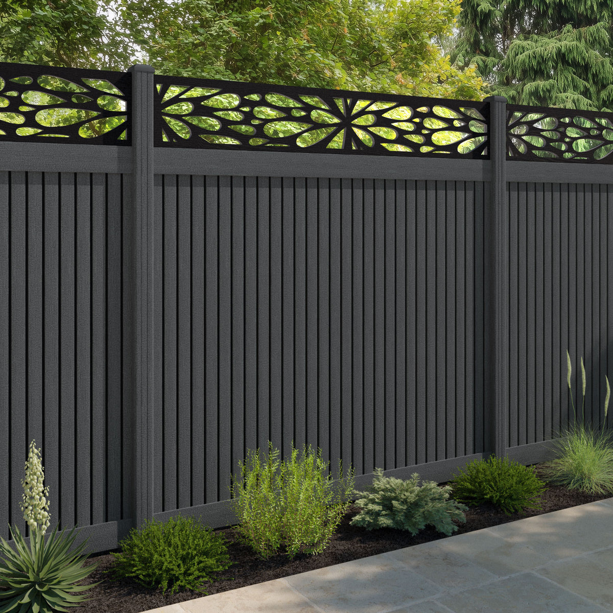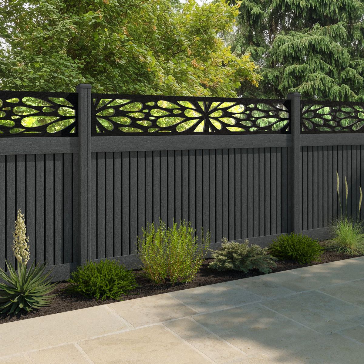 Virtis Blossom Fence Panel Dark Grey - with our composite posts