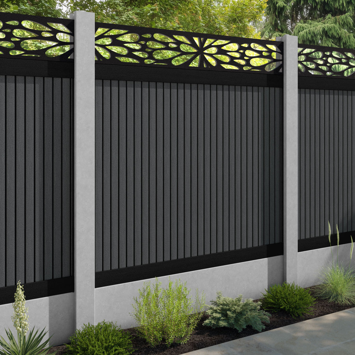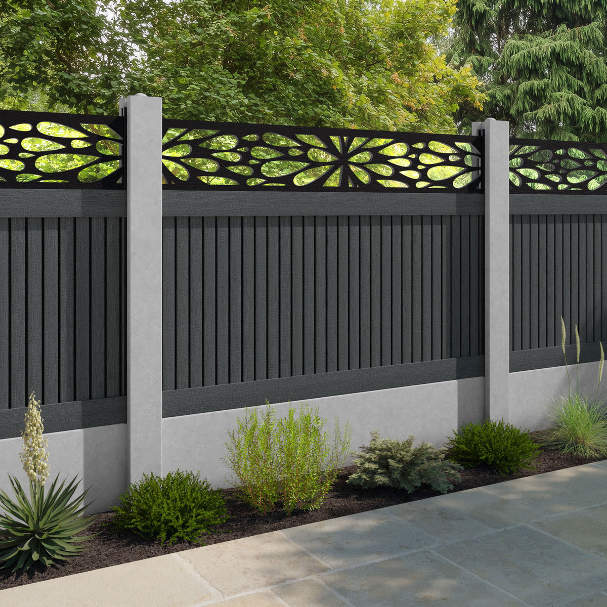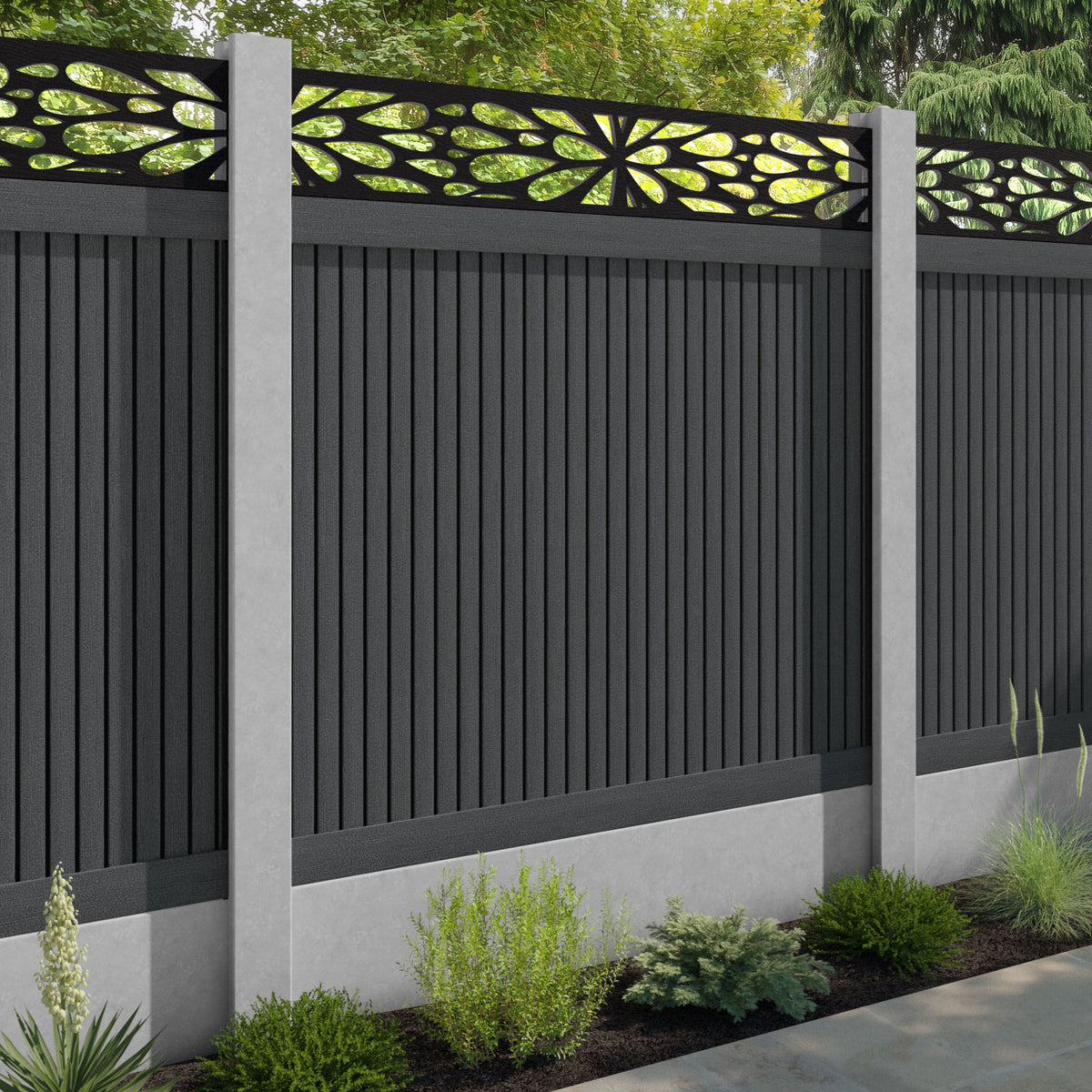 Virtis Blossom Fence Panel Dark Grey - for existing concrete posts