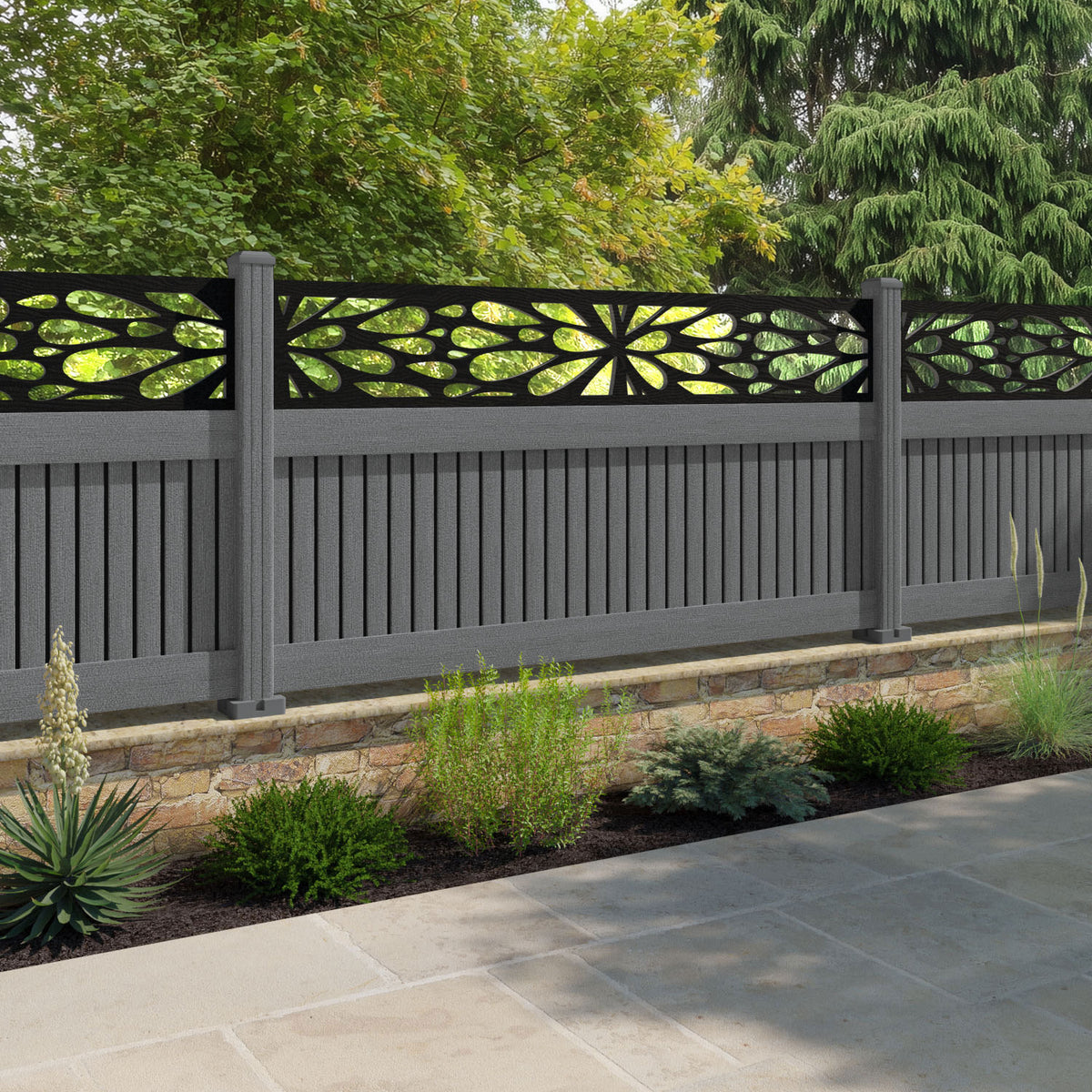 Virtis Blossom Fence Panel Mid Grey - with our composite posts