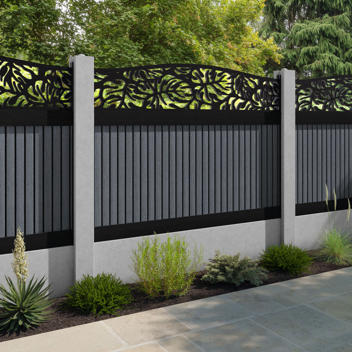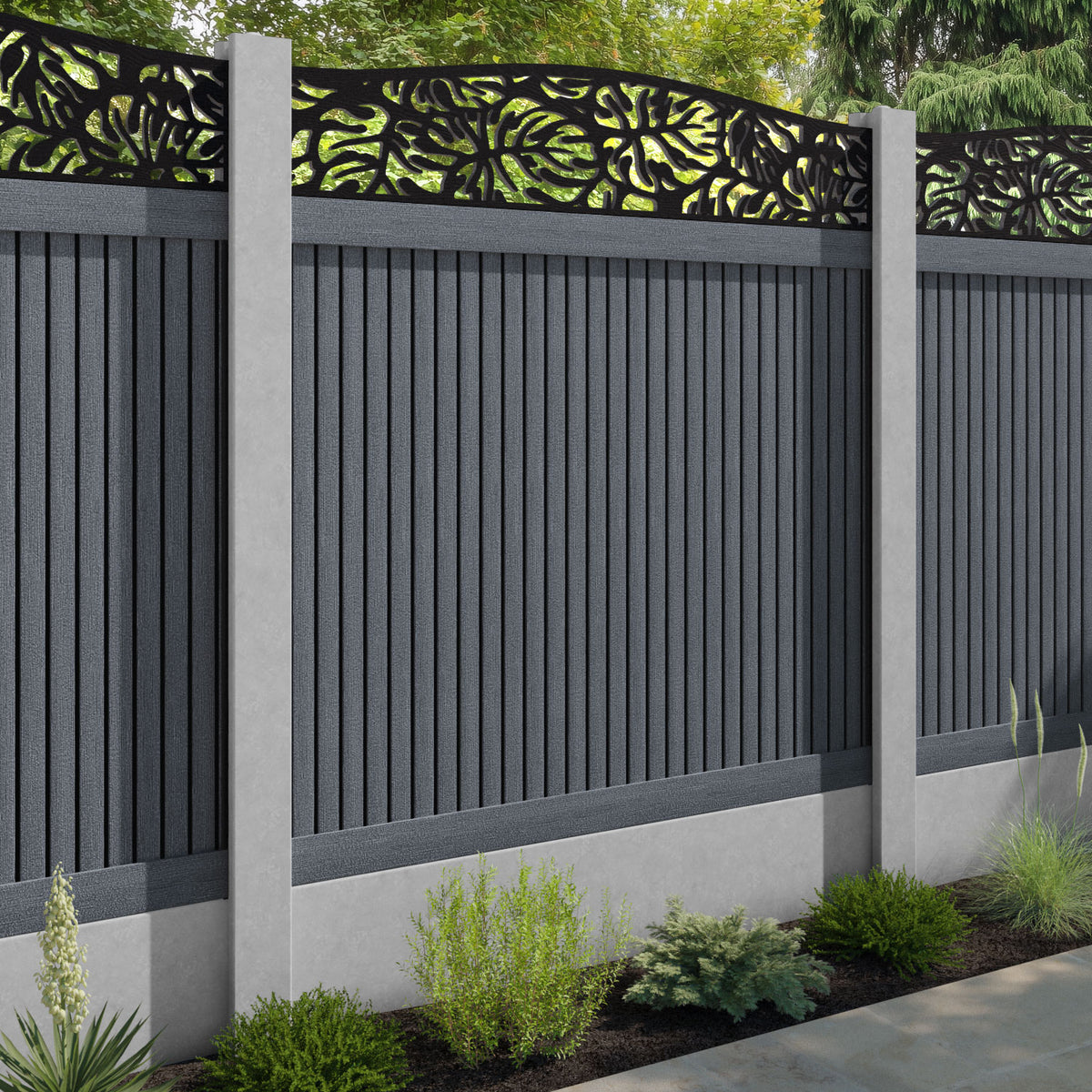 Virtis Botanic Curved Top Fence Panel Anthracite - for existing concrete posts