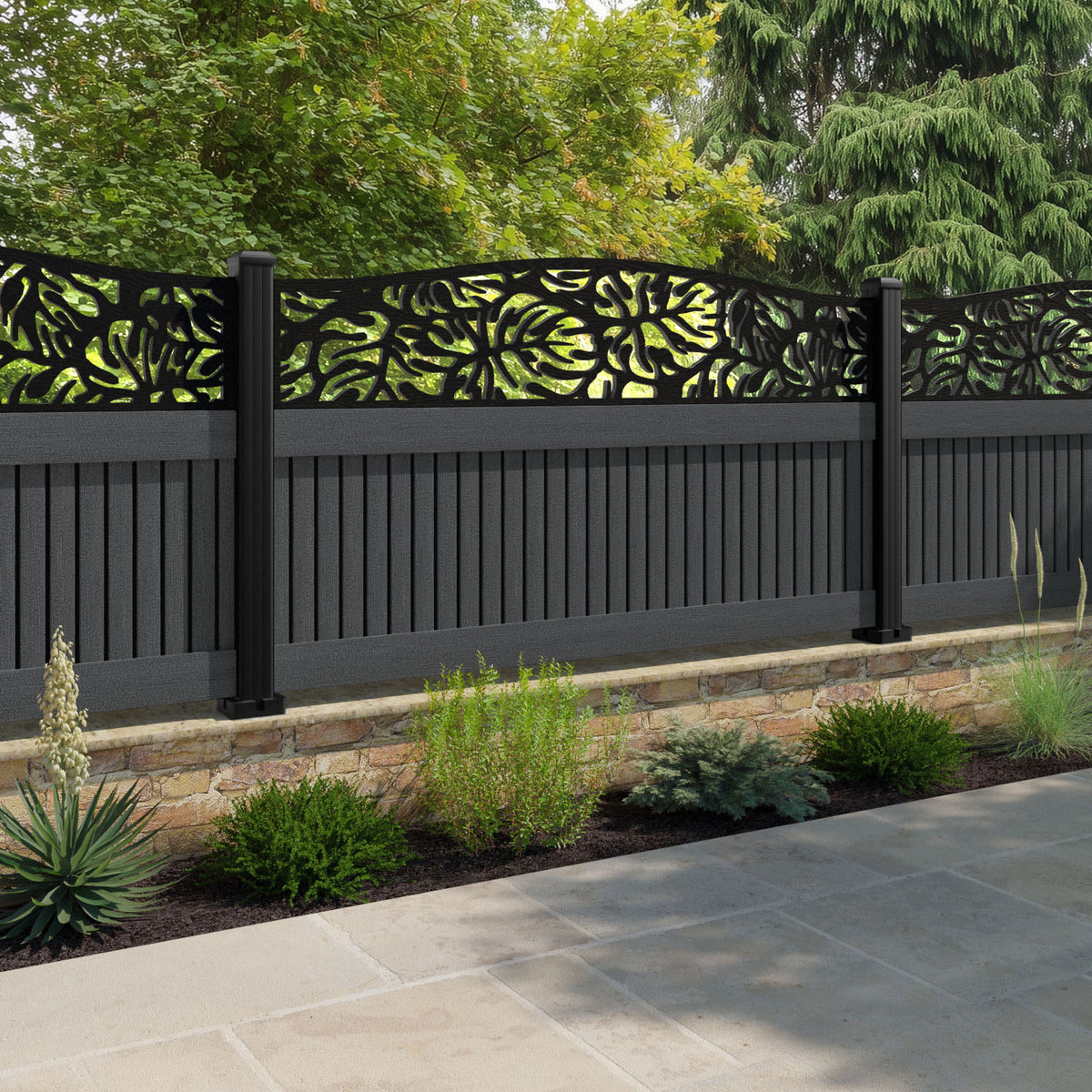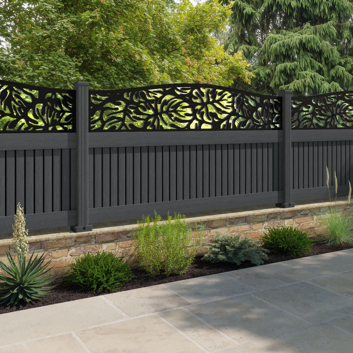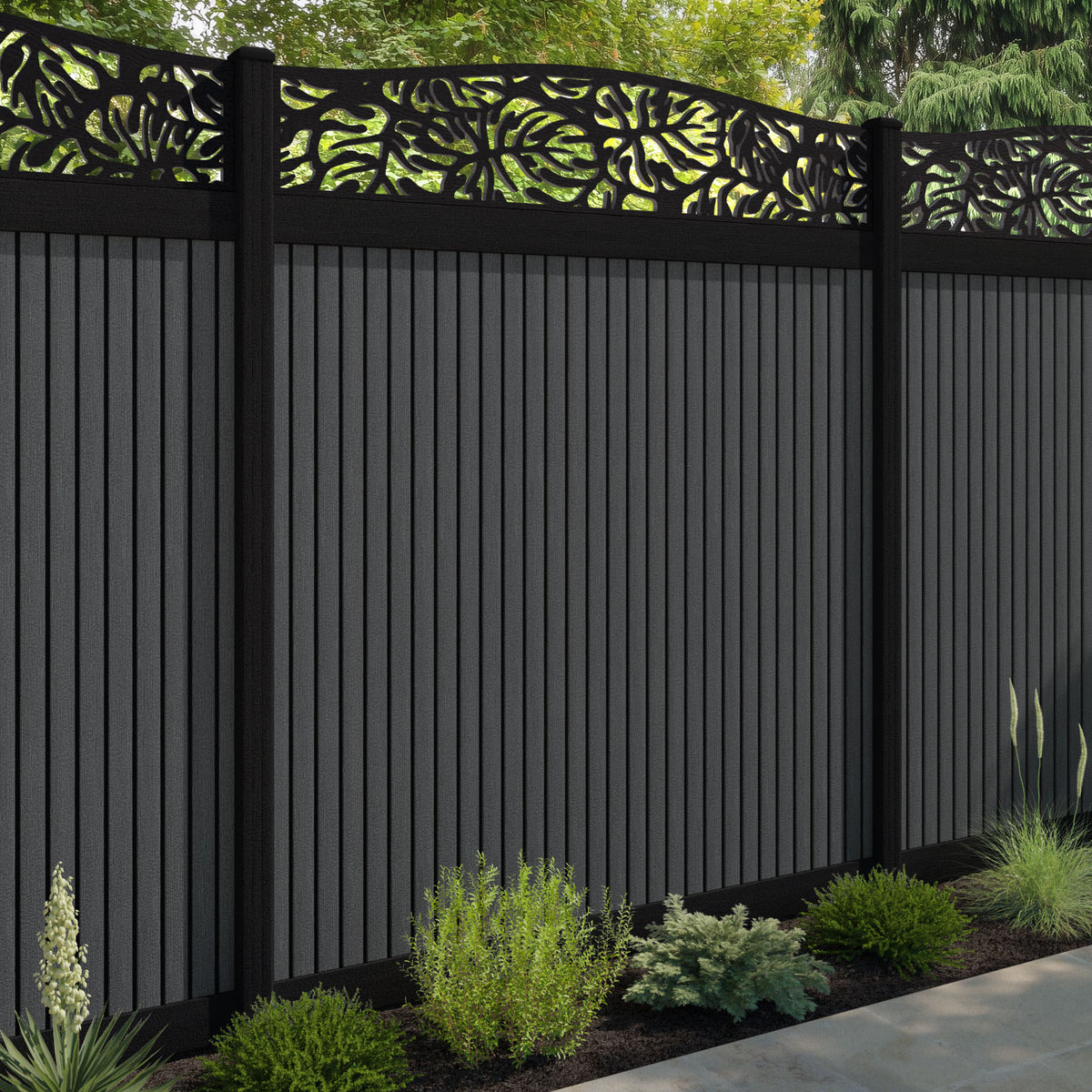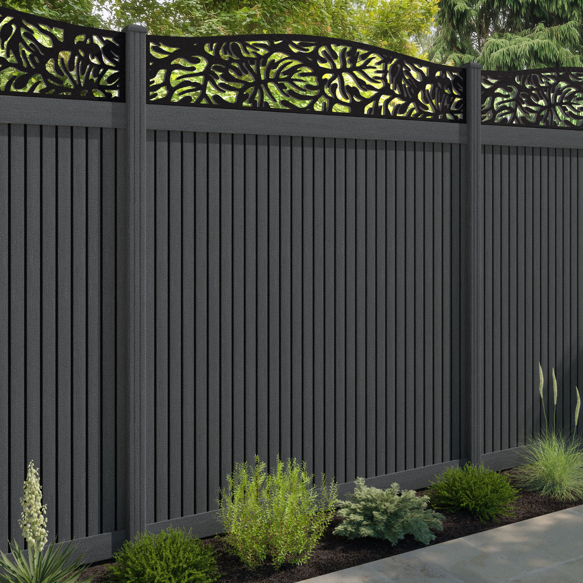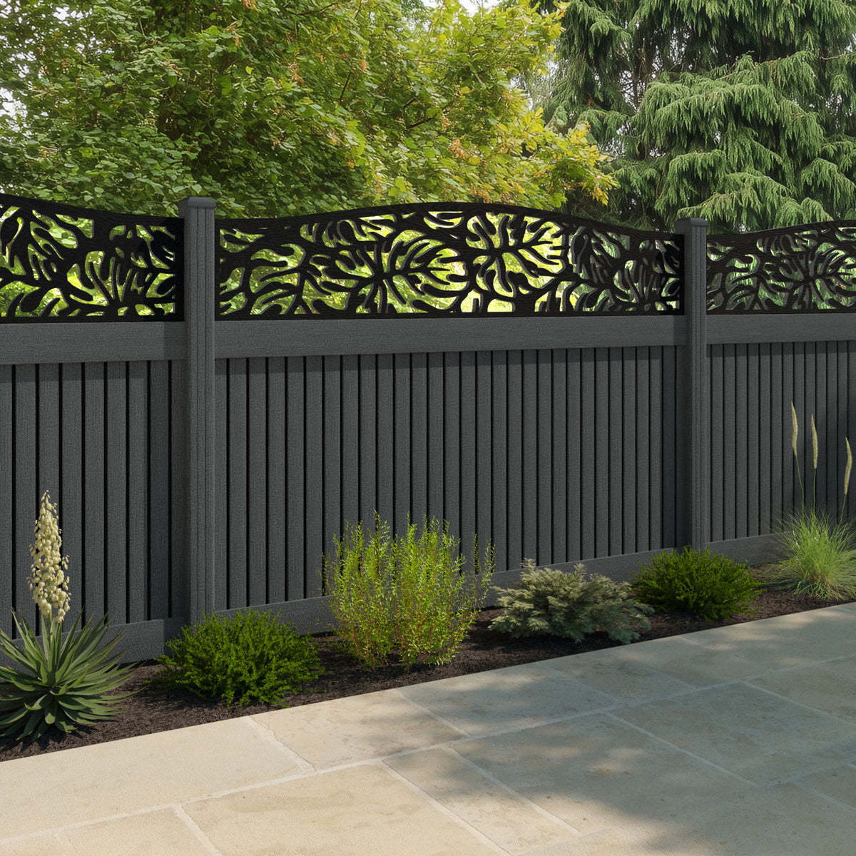 Virtis Botanic Curved Top Fence Panel Dark Grey - with our composite posts