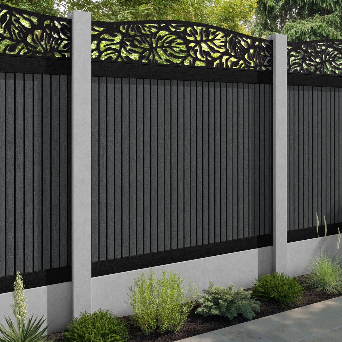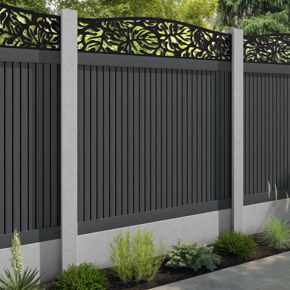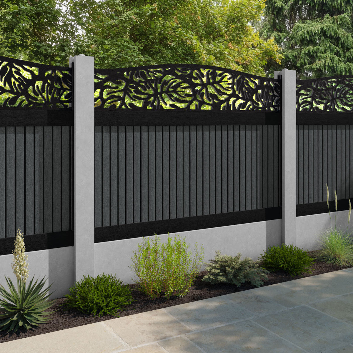 Virtis Botanic Curved Top Fence Panel Dark Grey - for existing concrete posts