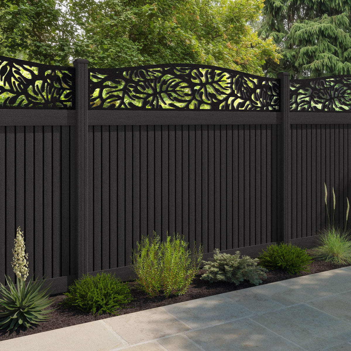 Virtis Botanic Curved Top Fence Panel Dark Oak - with our composite posts