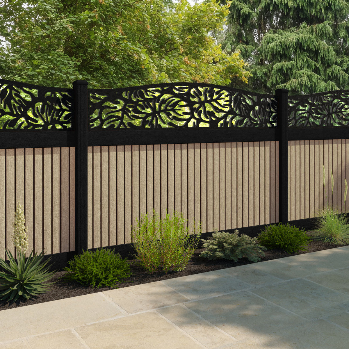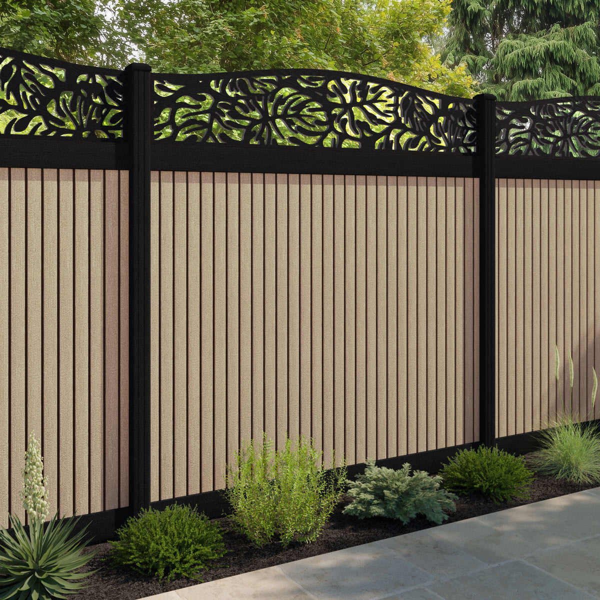 Virtis Botanic Curved Top Fence Panel Light Oak - with our aluminium posts