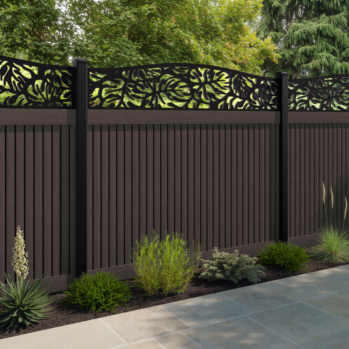 Virtis Botanic Curved Top Fence Panel Mid Brown - with our composite posts