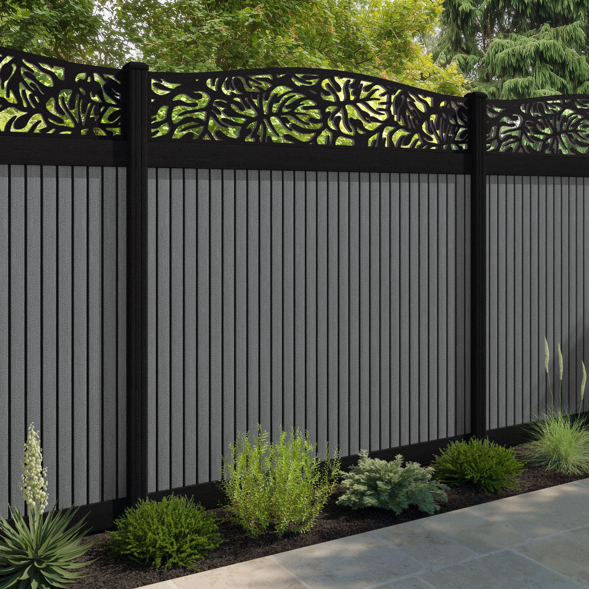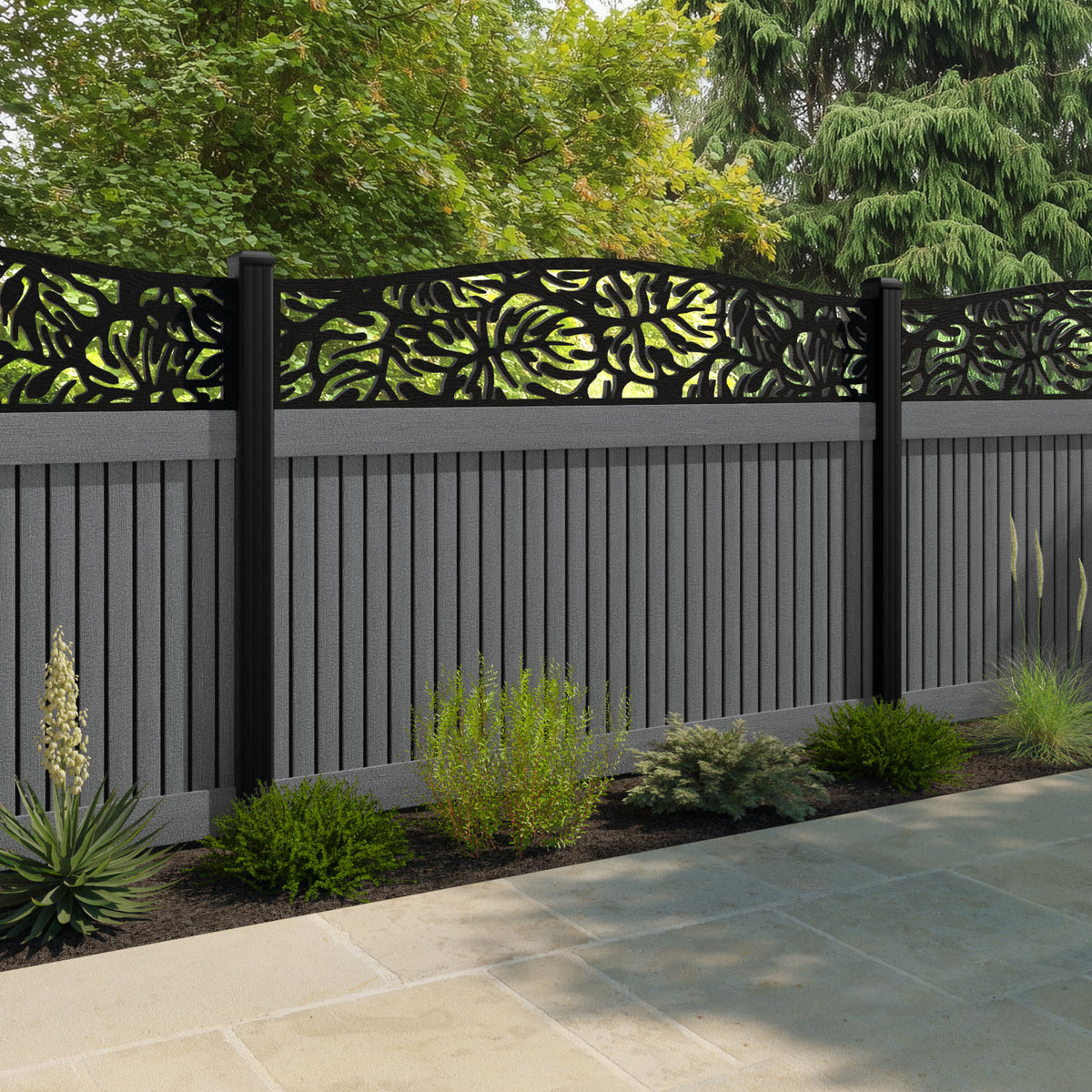 Virtis Botanic Curved Top Fence Panel Mid Grey - with our aluminium posts