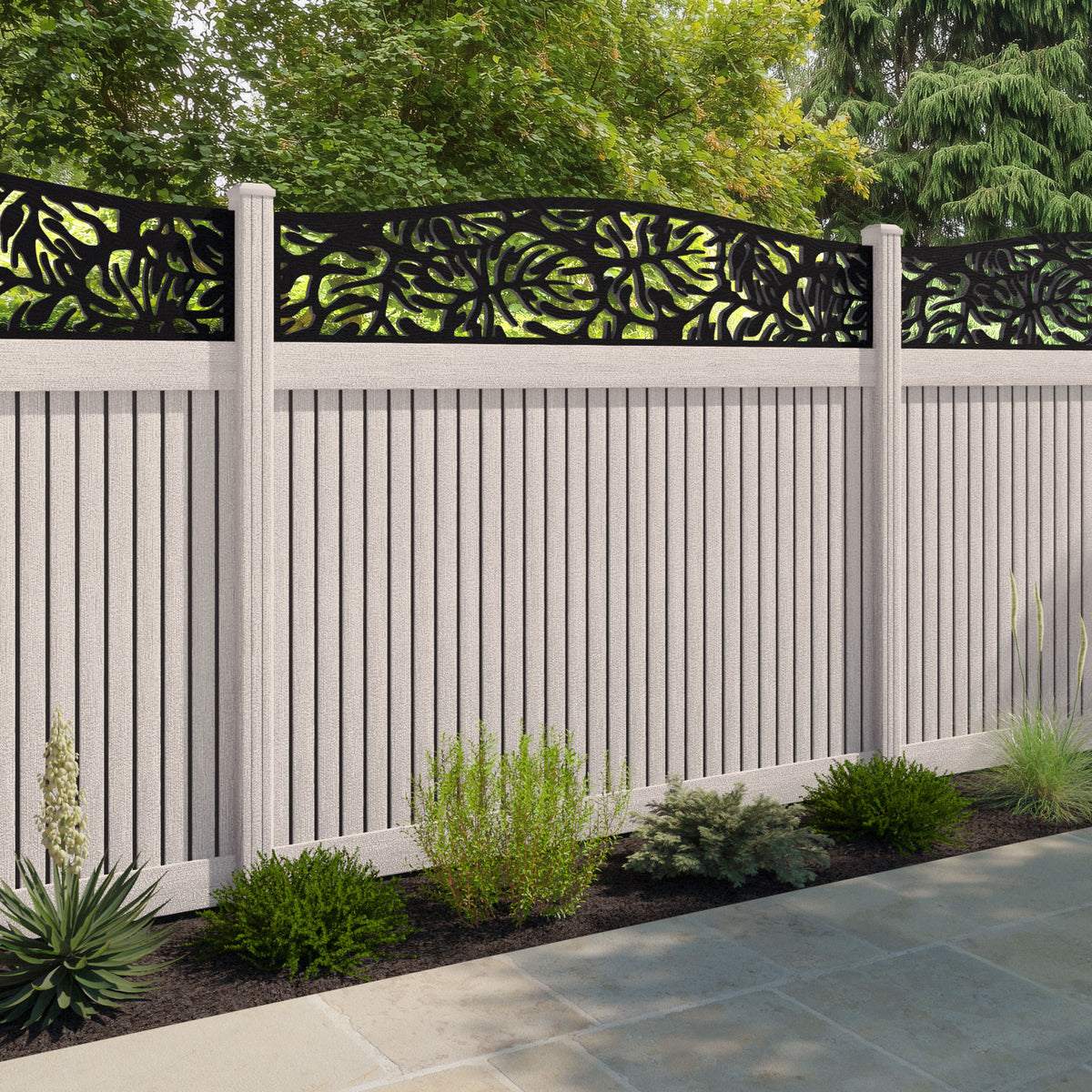 Virtis Botanic Curved Top Fence Panel Mid Stone - with our composite posts