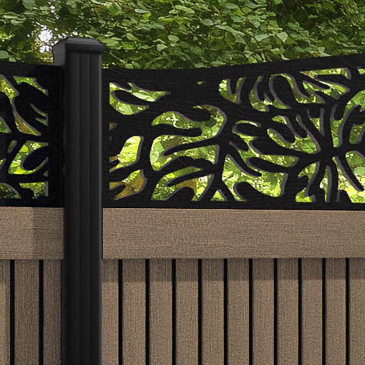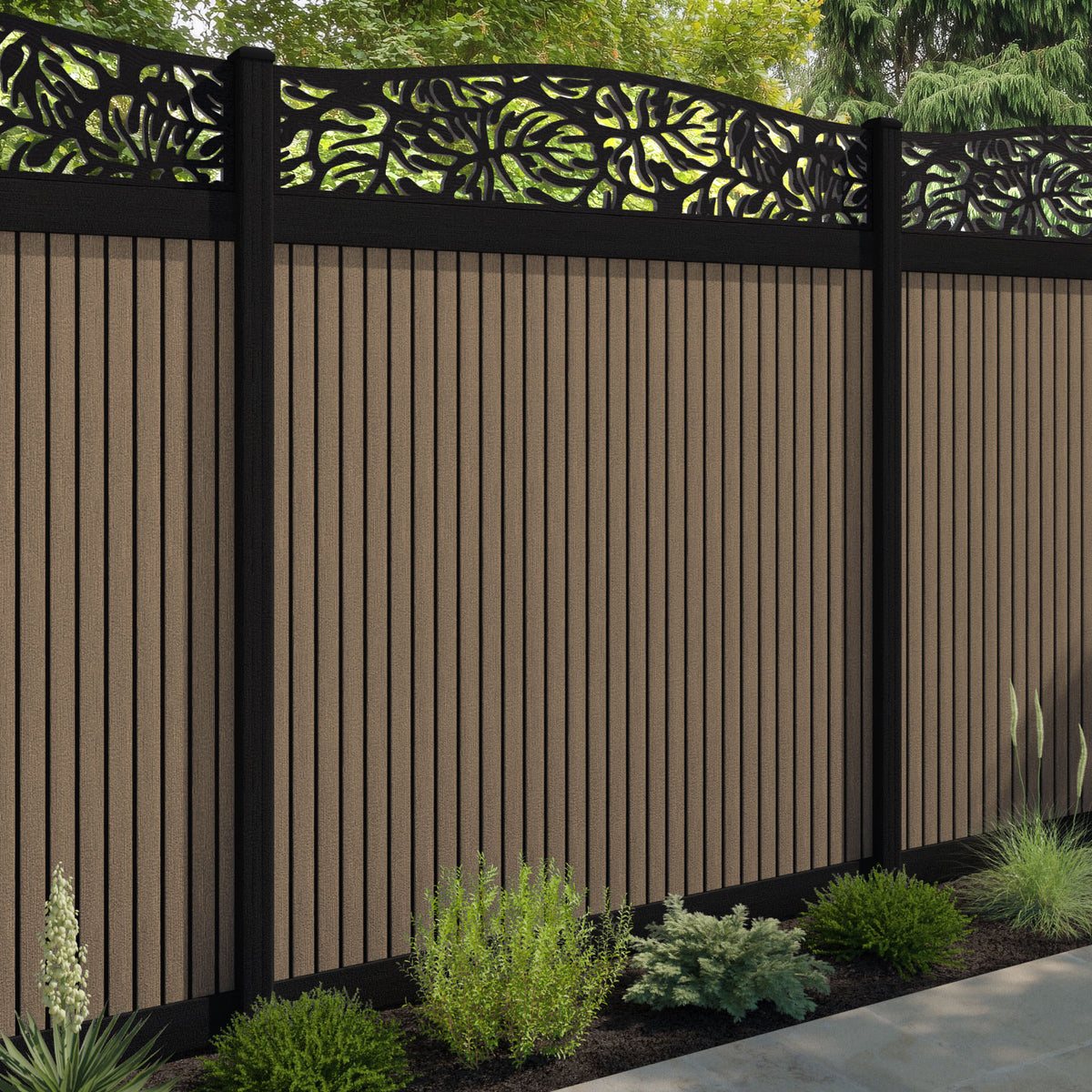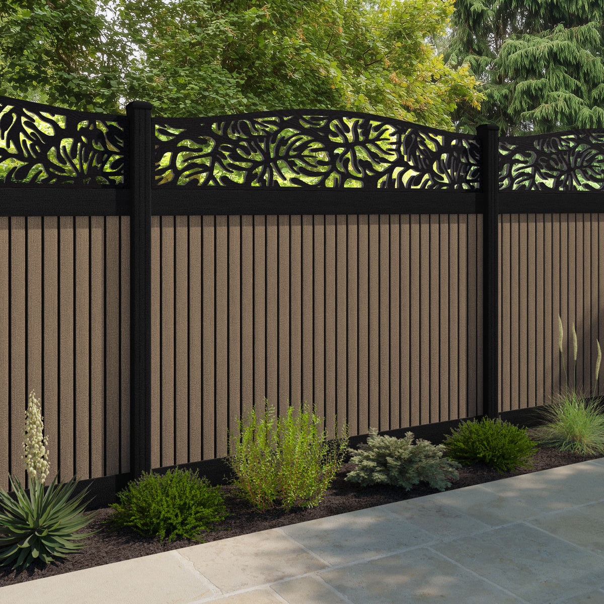 Virtis Botanic Curved Top Fence Panel Teak - with our aluminium posts