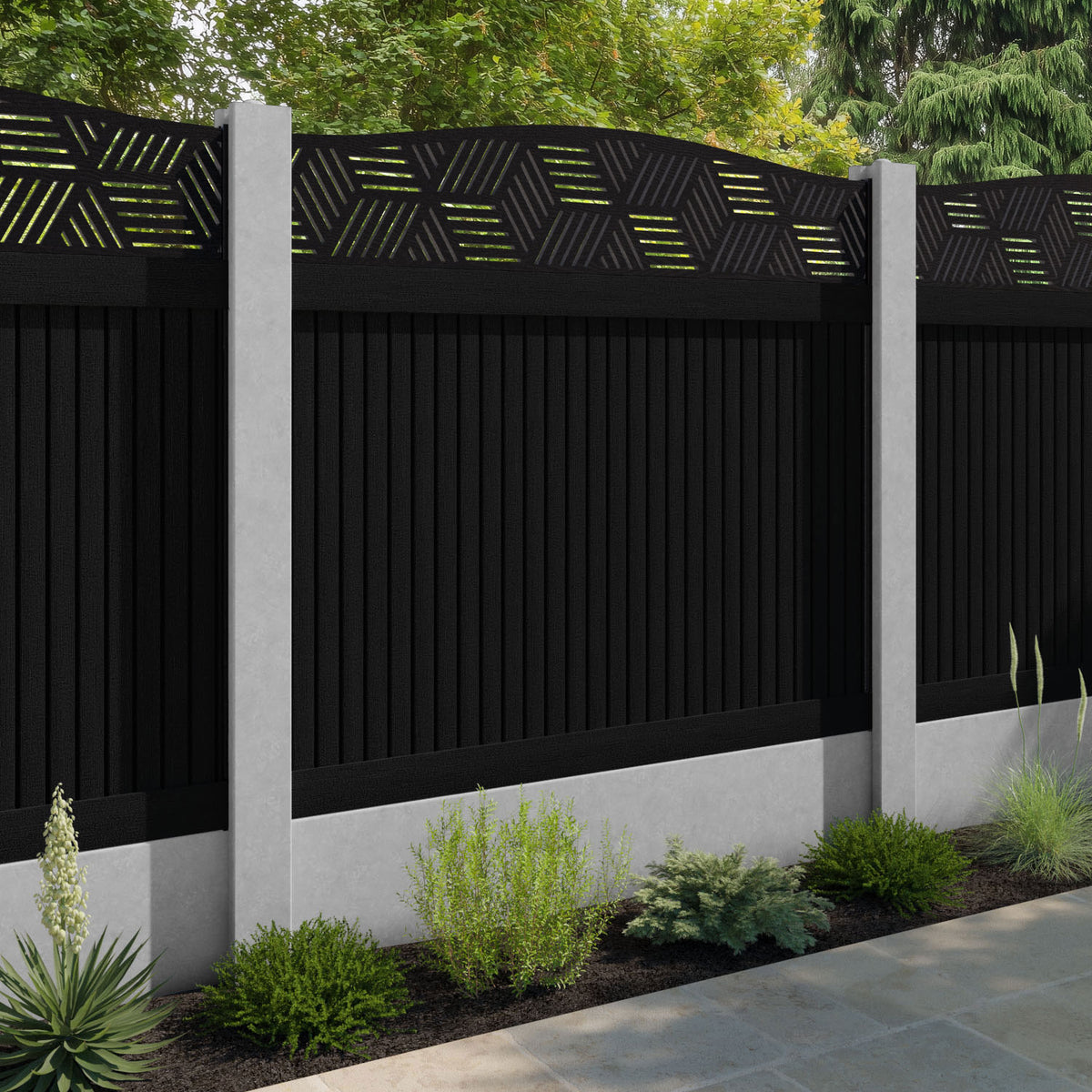 Virtis Cubed Curved Top Fence Panel Black - for existing concrete posts