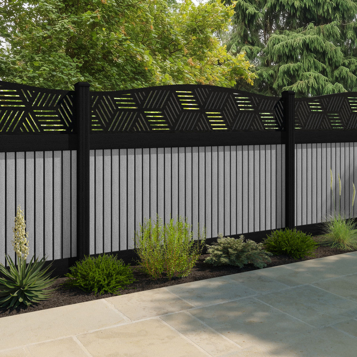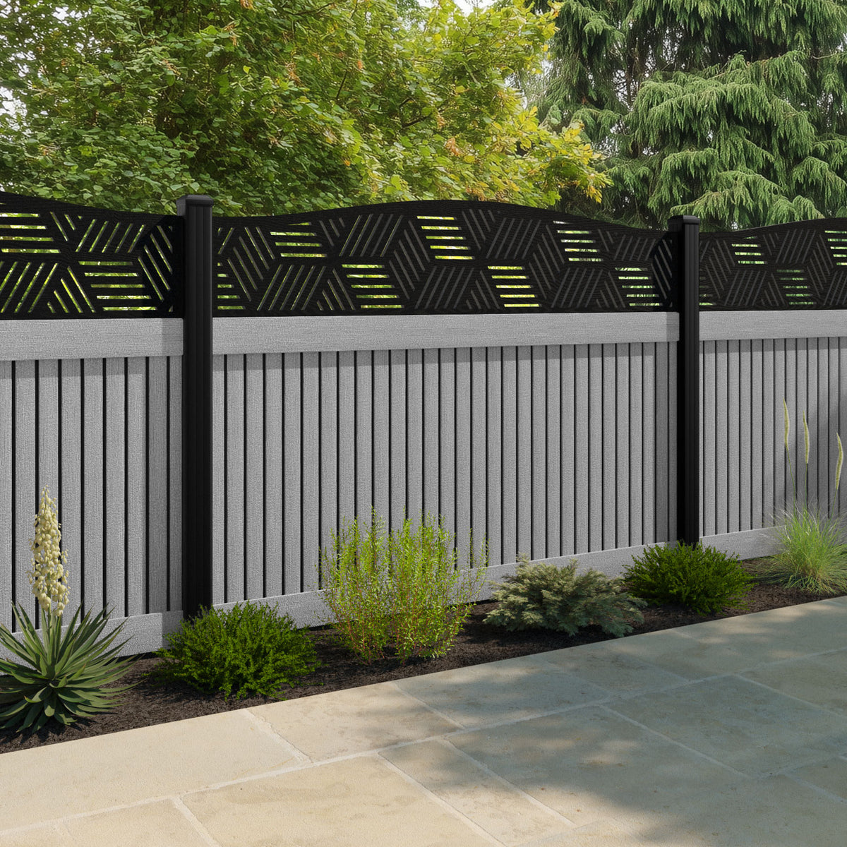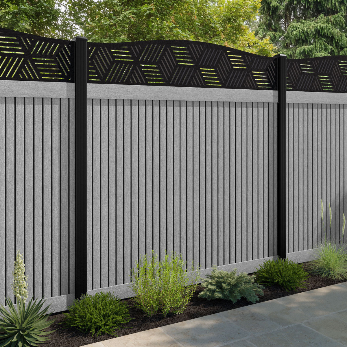 Virtis Cubed Curved Top Fence Panel Light Grey - with our aluminium posts