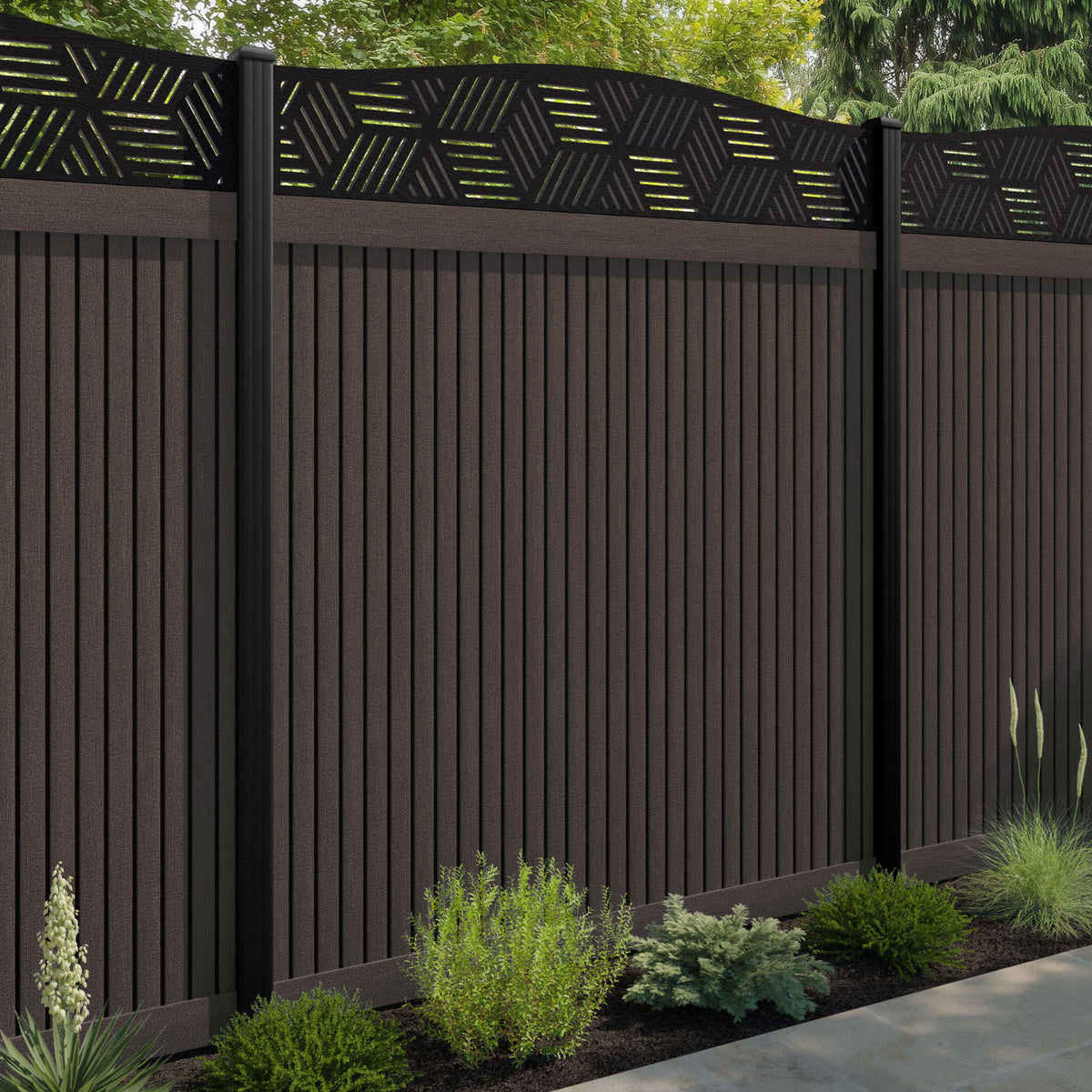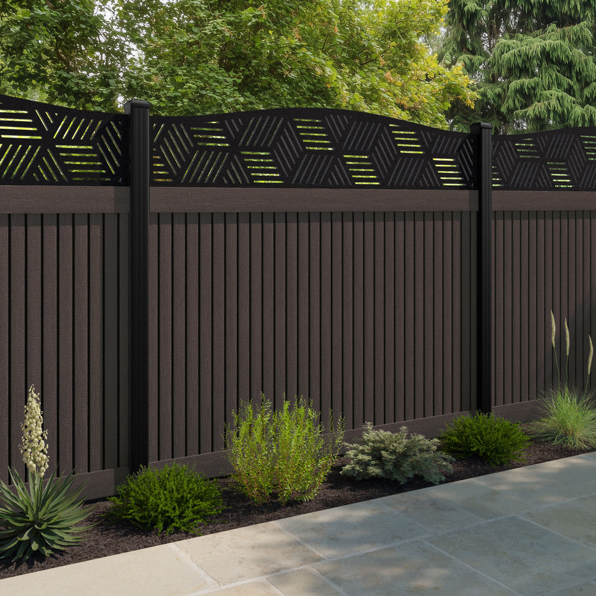 Virtis Cubed Curved Top Fence Panel Mid Brown - with our aluminium posts