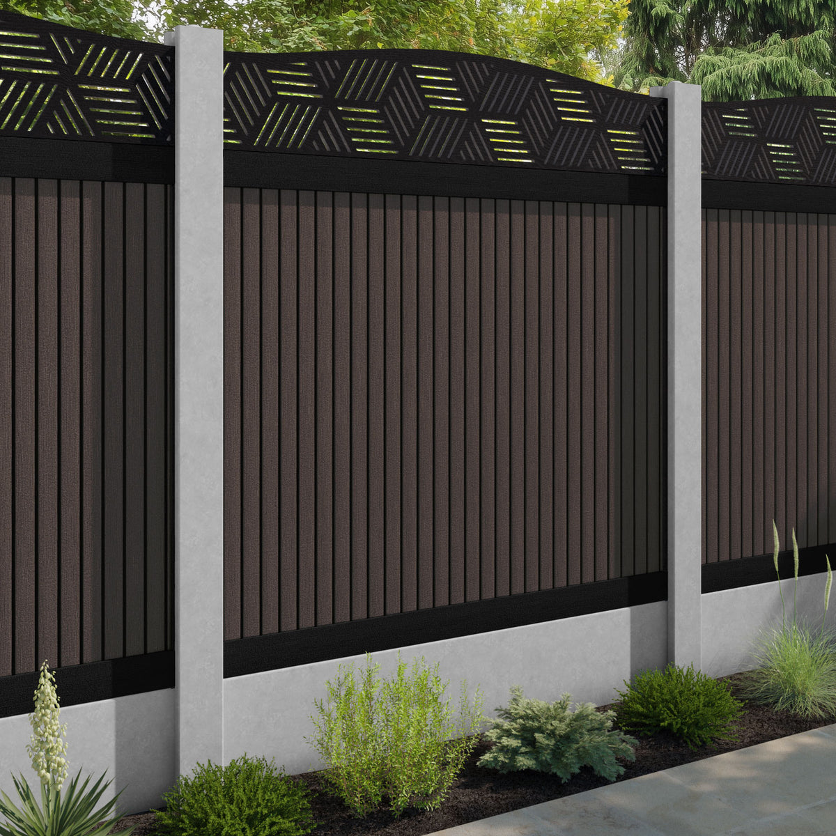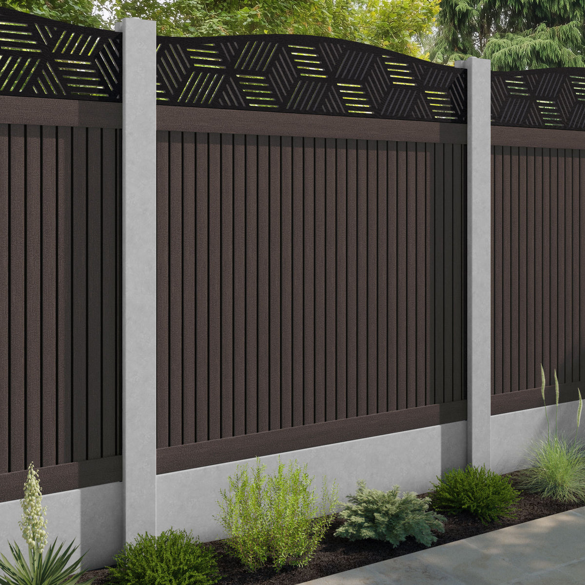 Virtis Cubed Curved Top Fence Panel Mid Brown - for existing concrete posts